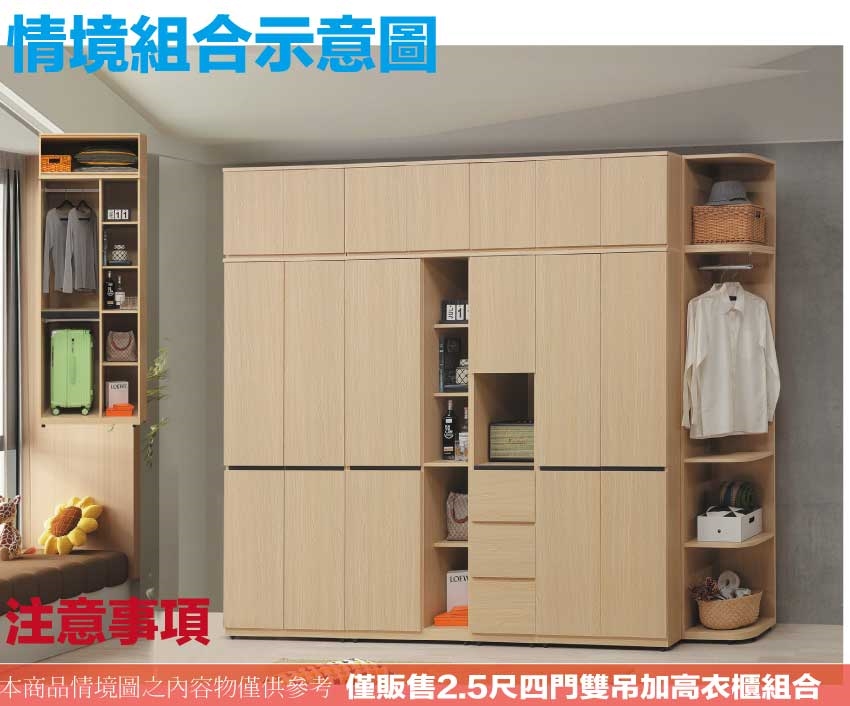 【綠家居】巴米2.5尺開門半開放加高衣櫃組合