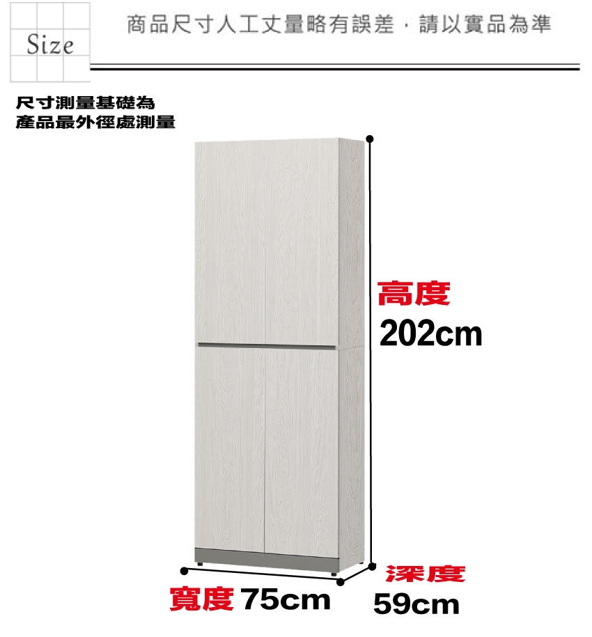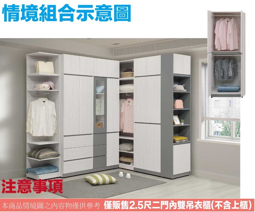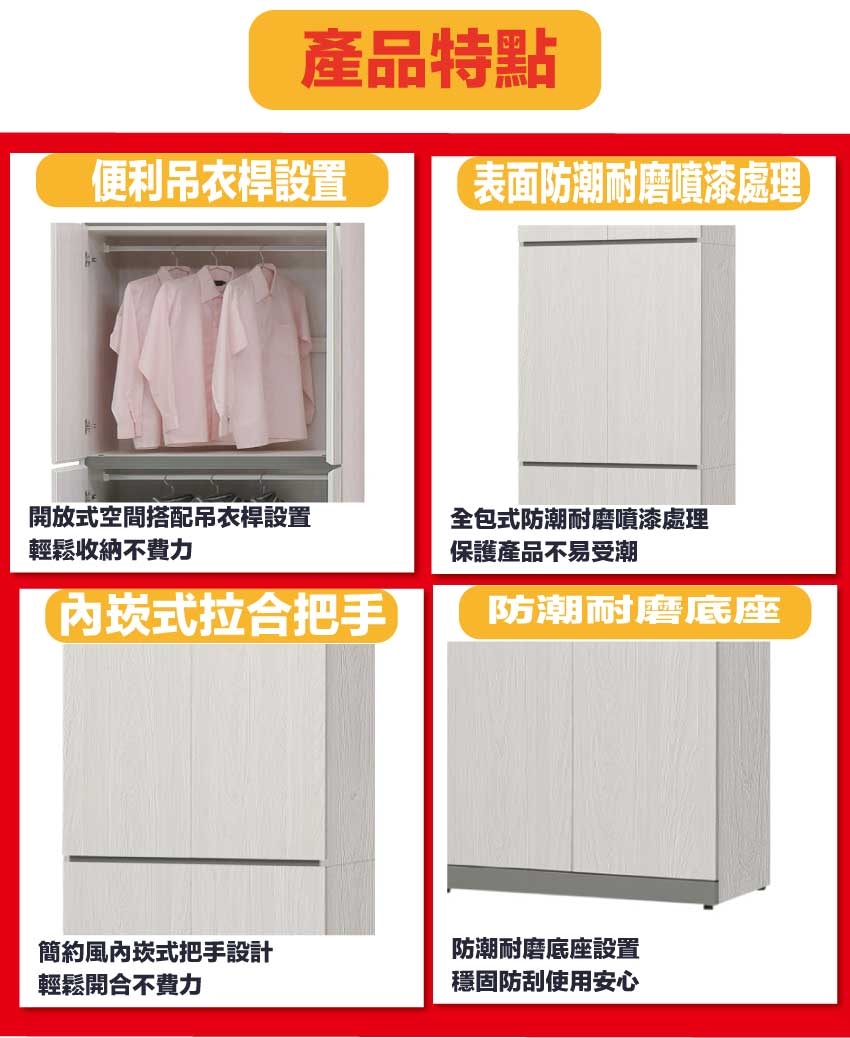 - ◆產品名稱:【綠家居】維斯2.5尺四門雙吊衣櫃