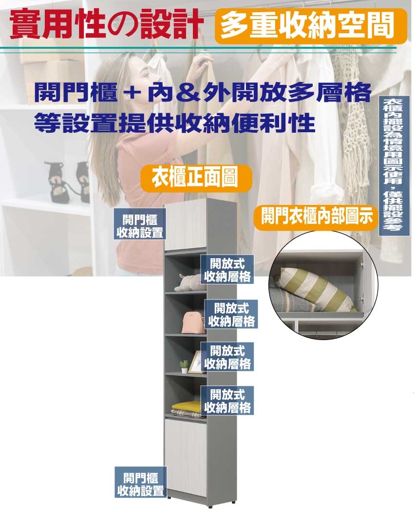 搭配採用開門櫃+內&外開放多層格等收納空間設計