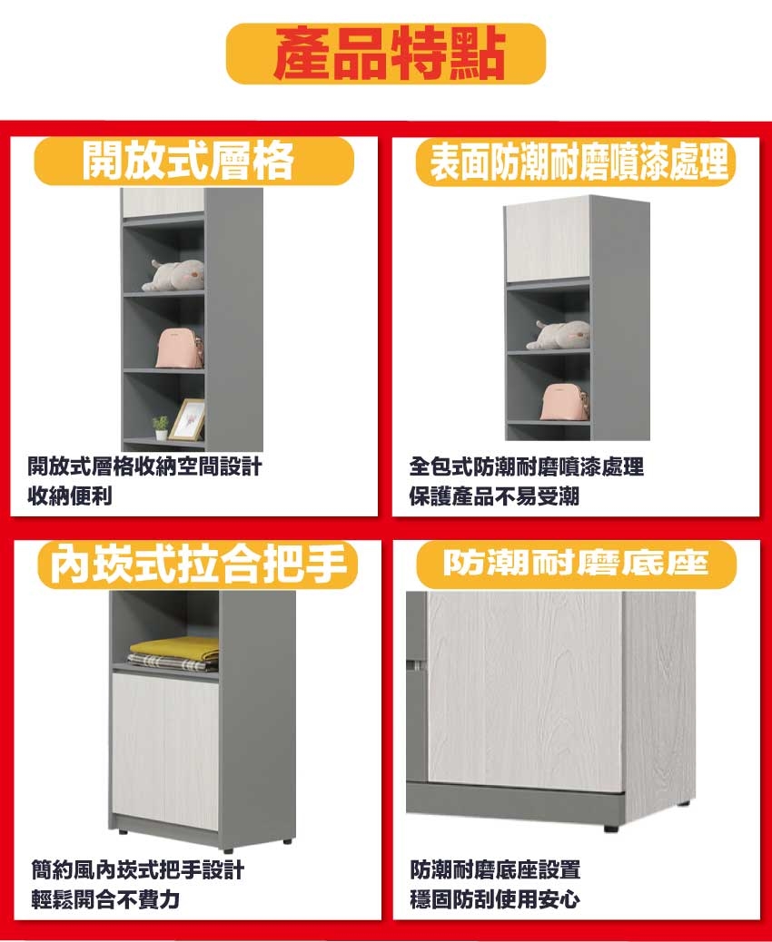 材質:防蛀木心板+防潮耐磨腳座+防夾手緩衝門片五金