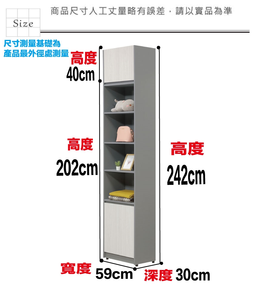 - ◆產品名稱:【綠家居】維斯2尺四門中空加高衣櫃組合