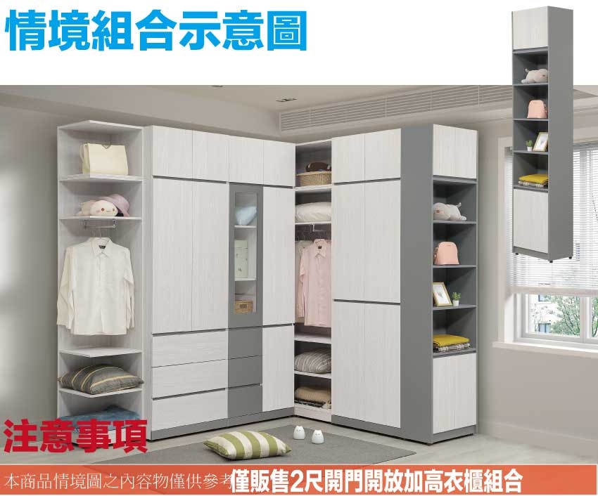【綠家居】維斯2尺四門中空加高衣櫃組合