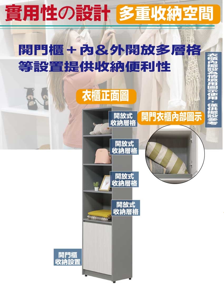 開門櫃+內&外開放多層格