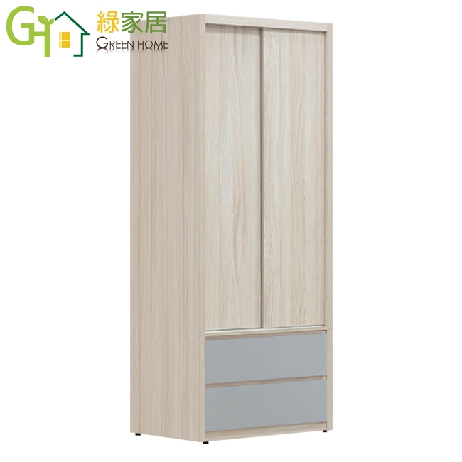 【綠家居】莫凡雙色2.6尺推門二抽衣櫃
