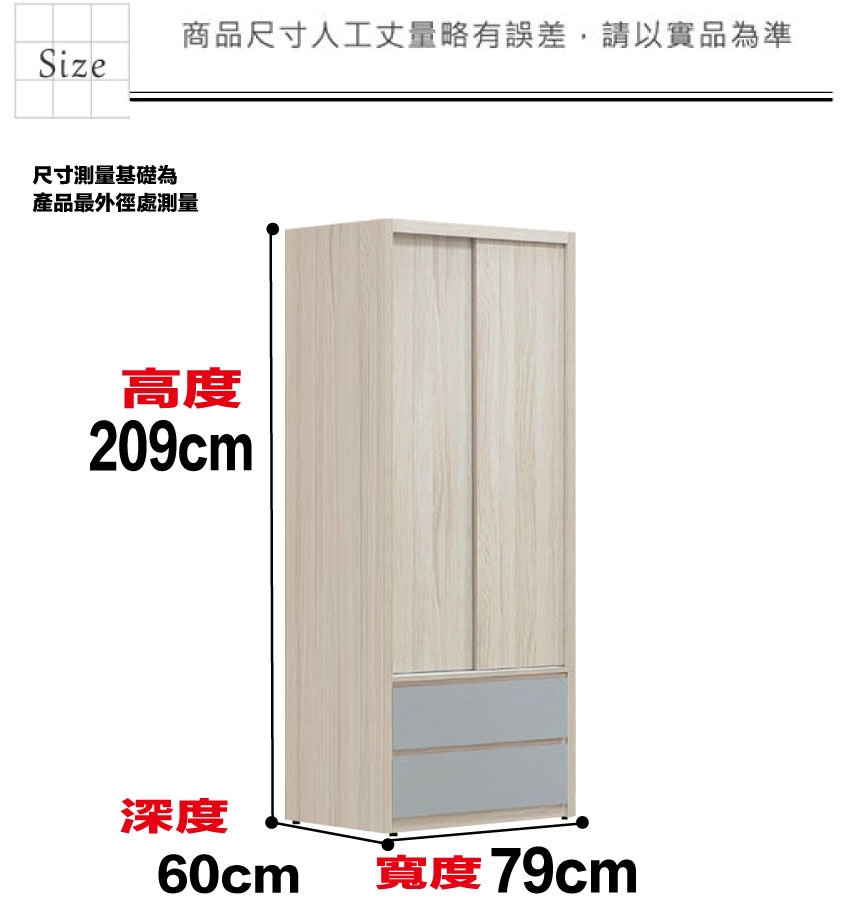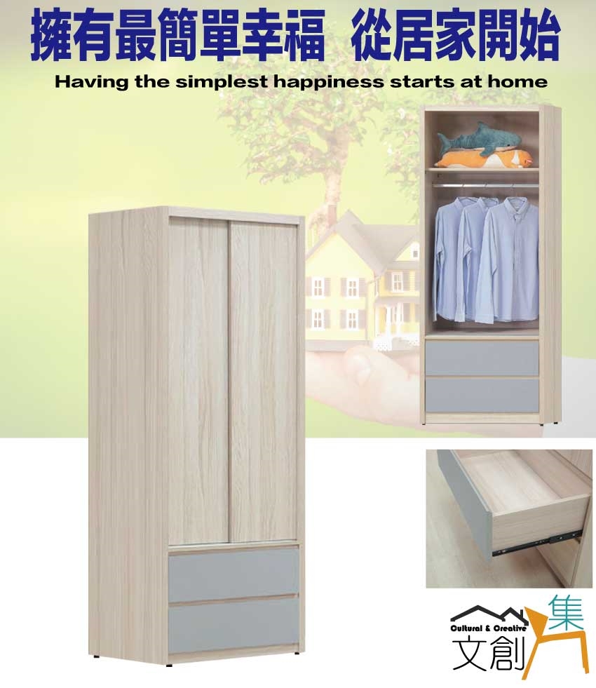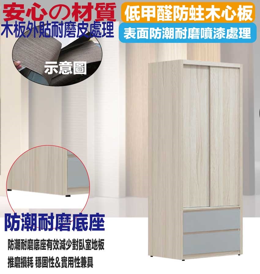 - ◆產品名稱:【綠家居】莫凡雙色2.6尺推門二抽衣櫃