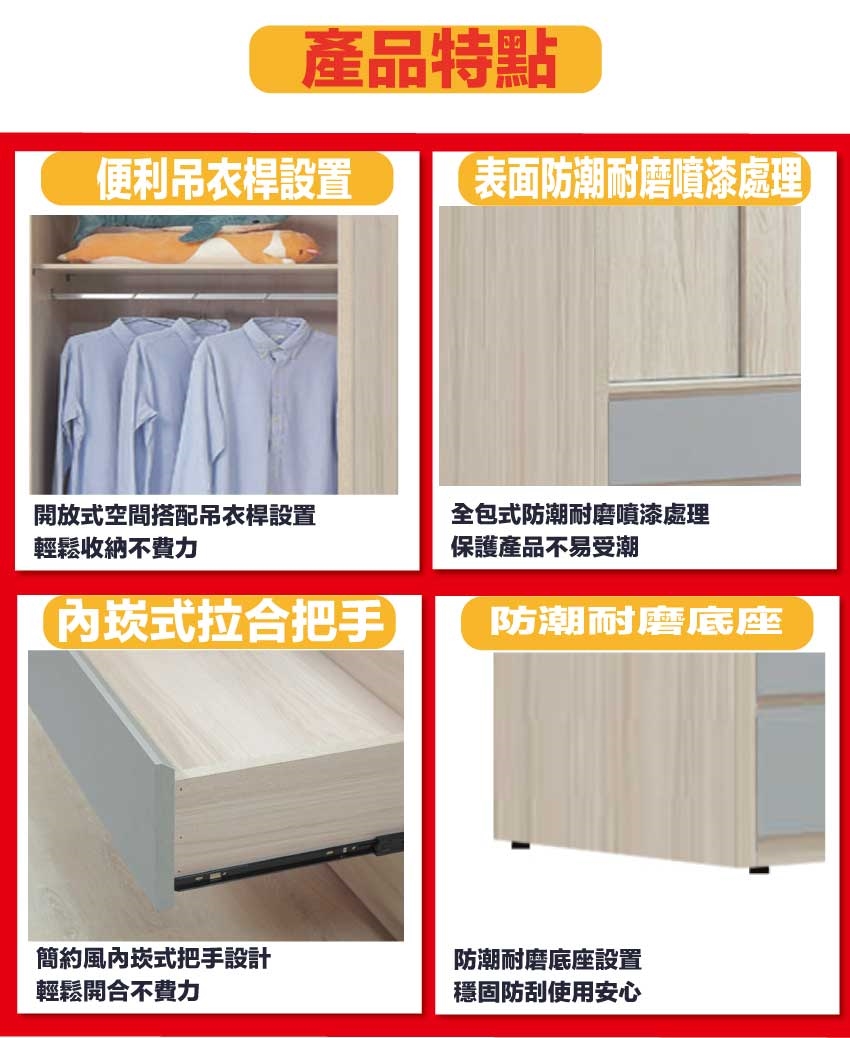 採用防蛀木心板+防潮耐磨底座+五金滑軌結構等安心材質製造