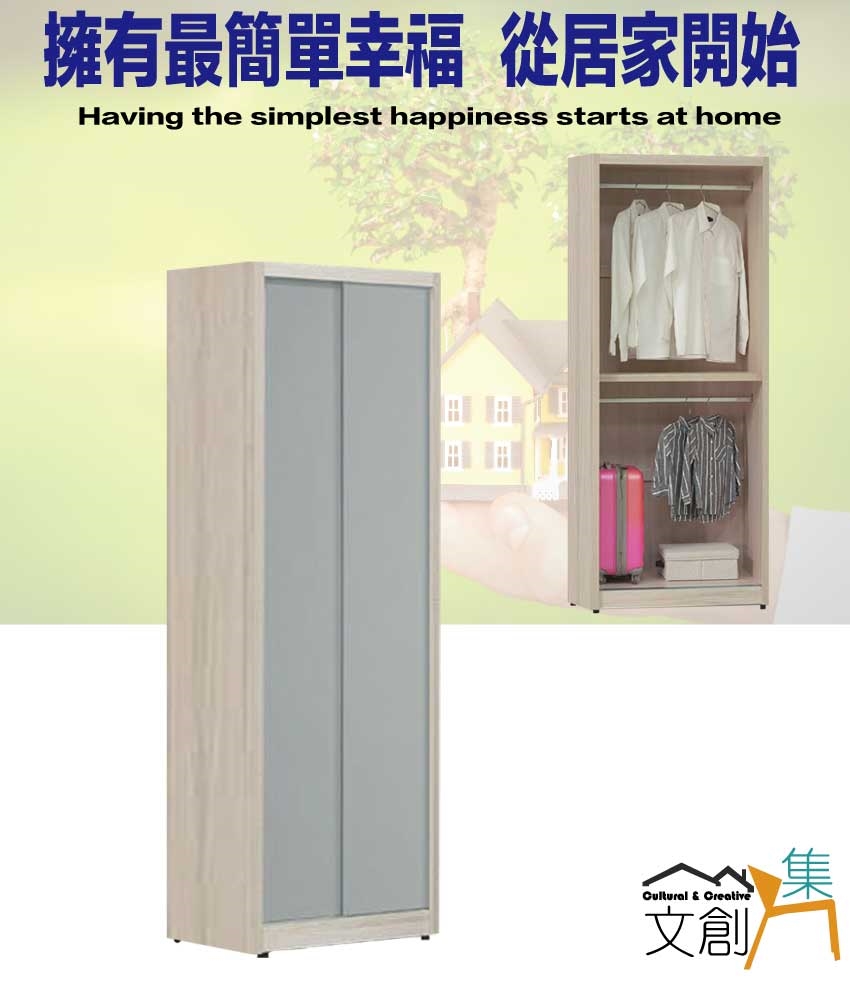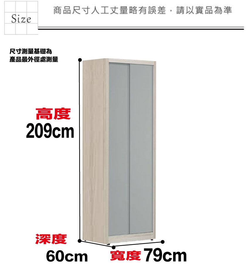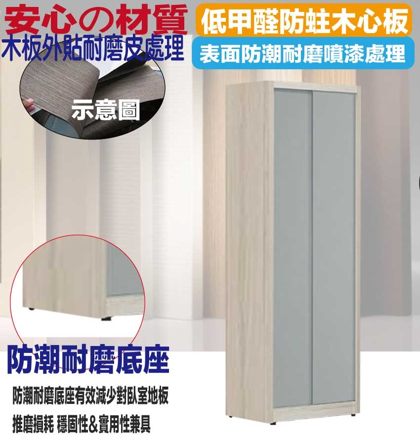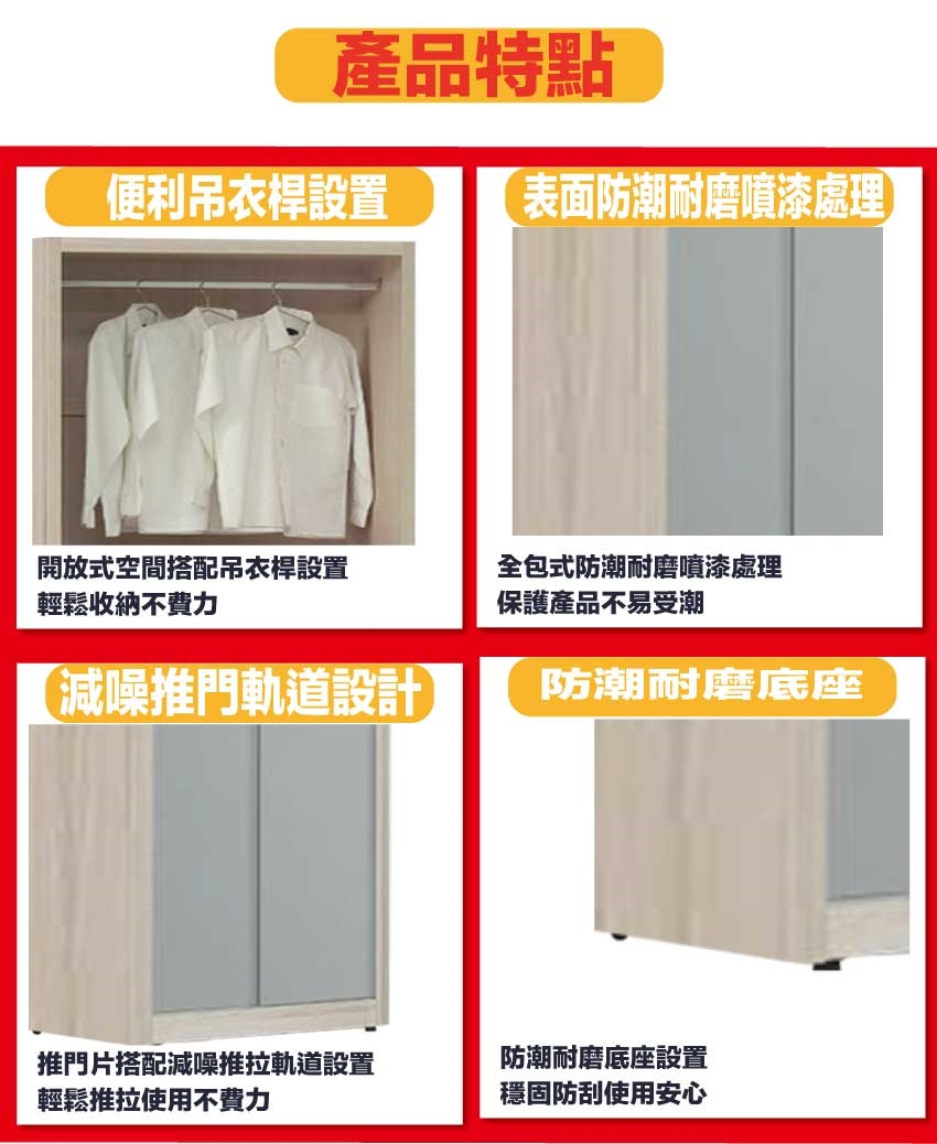- ◆產品名稱: 【綠家居】莫凡雙色2.6尺推門內雙吊衣櫃