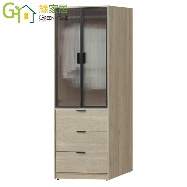 【綠家居】畢克爾2.5尺二門鋁框三抽衣櫃