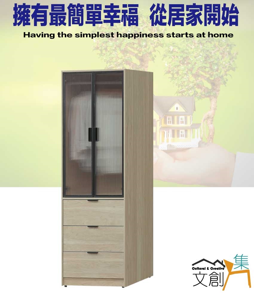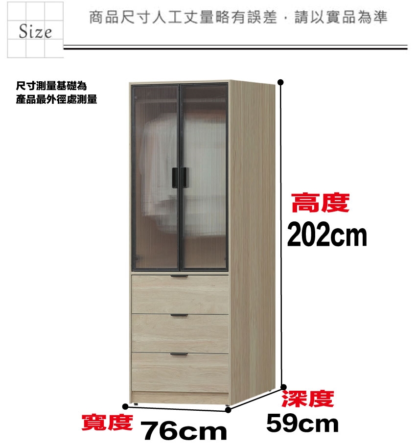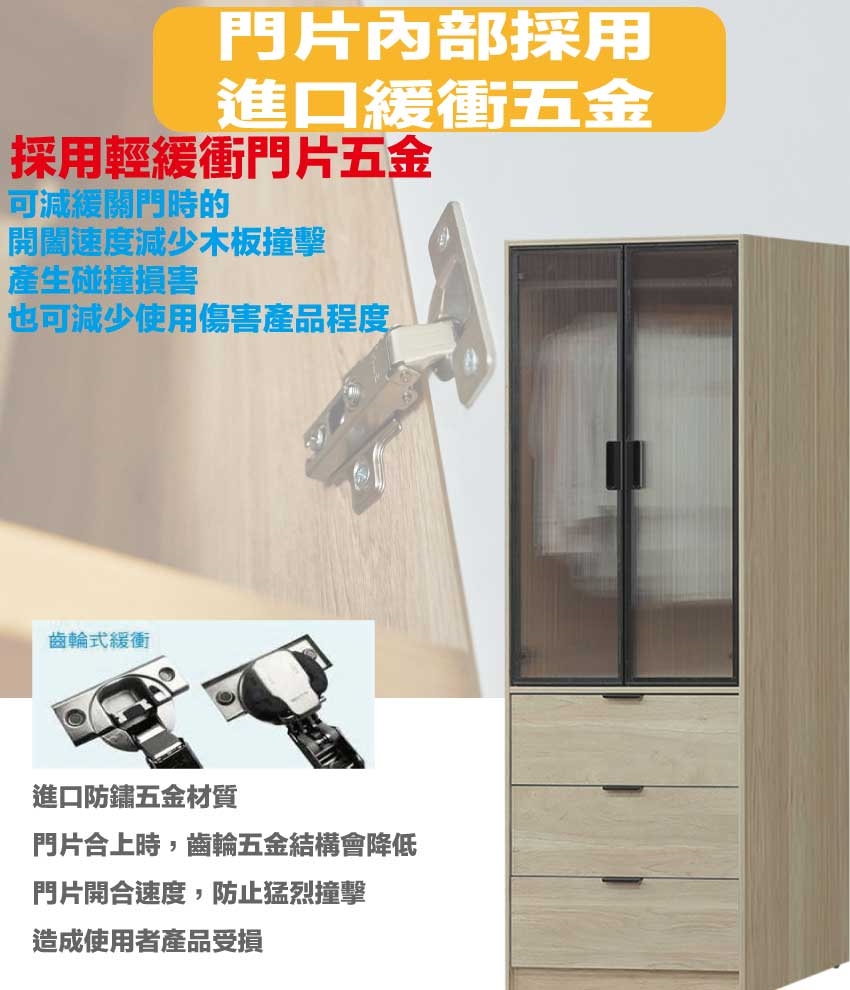 - ◆產品名稱:【綠家居】畢克爾2.5尺二門鋁框三抽衣櫃