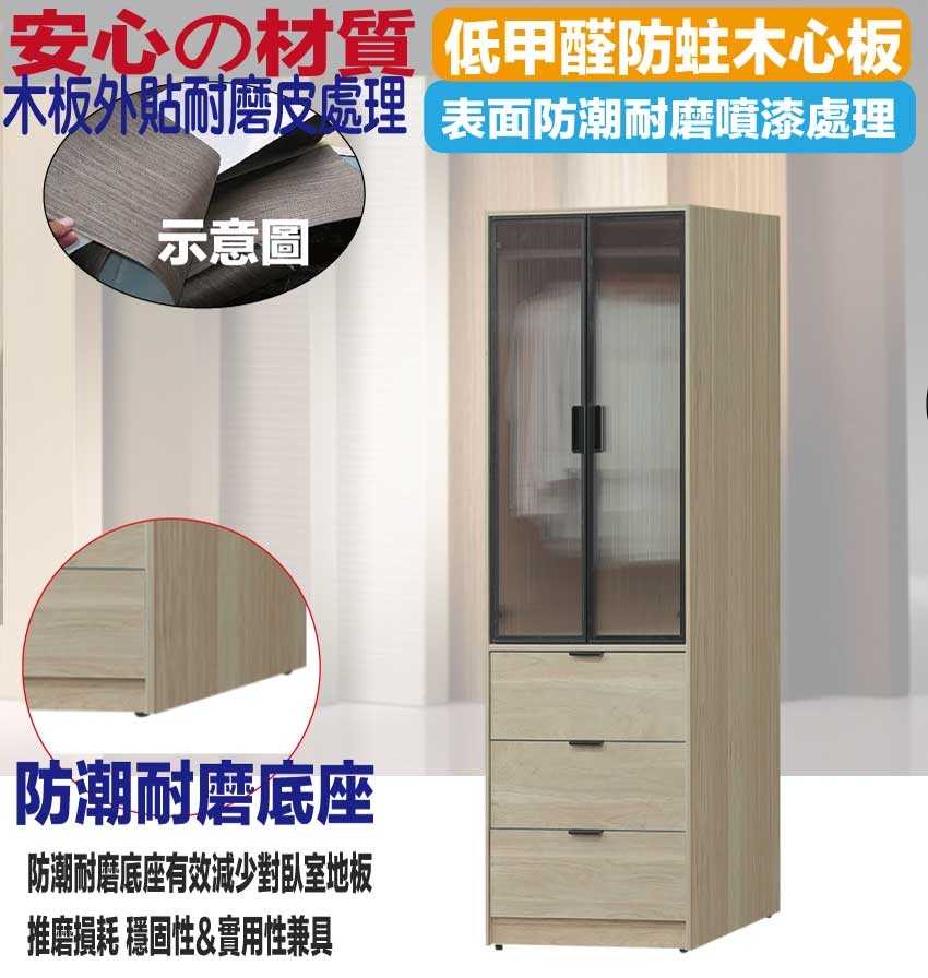 ★偏遠地區需額外加收運費,下標請先問與答詢問★ ★下訂前注意 由於商品流動較快,下訂前請先詢問是否有貨在下訂喔~★ 【綠家居】畢克爾2.5尺二門鋁框三抽衣櫃 橡木紋色系+安心材質製造,使用放心+搭配居家更便利,採用防蛀木心板+防潮耐磨底座+長虹PC材質門片+黑漆鋁製門框+防夾手緩衝門片五金+五金滑軌結構等安心材質製造 ,外層採用防潮耐磨噴漆處理搭配採用開門櫃+三抽屜+吊衣桿+內開放層格等收納空間設計,全由專人配送到家,專業安心服務,替你省下更多時間!
