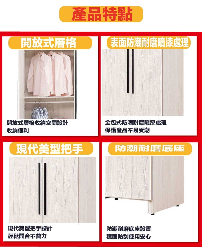 - ◆產品名稱:【綠家居】得卡利2.7尺四門內雙吊加高衣櫃組合