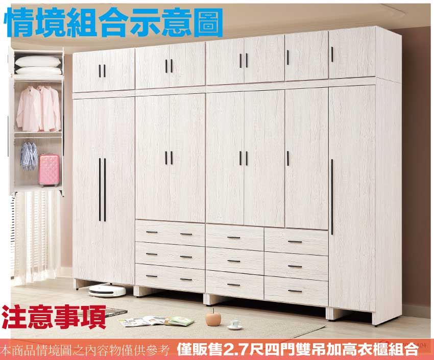 【綠家居】得卡利2.7尺四門內雙吊加高衣櫃組合