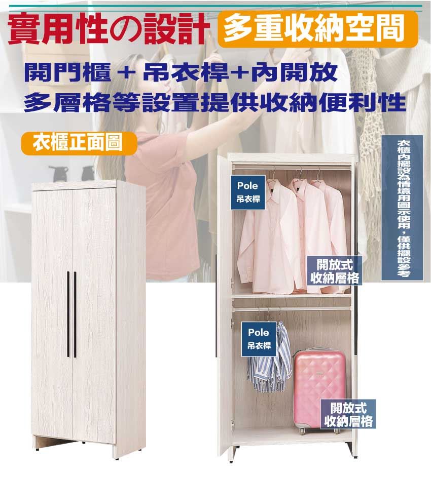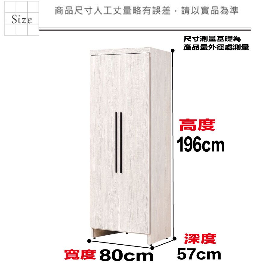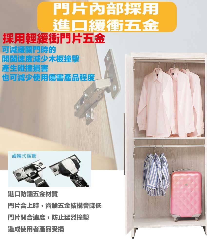- ◆產品名稱:【綠家居】得卡利2.7尺二門內雙吊衣櫃