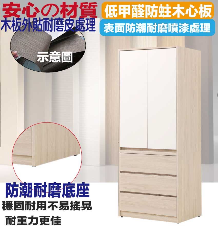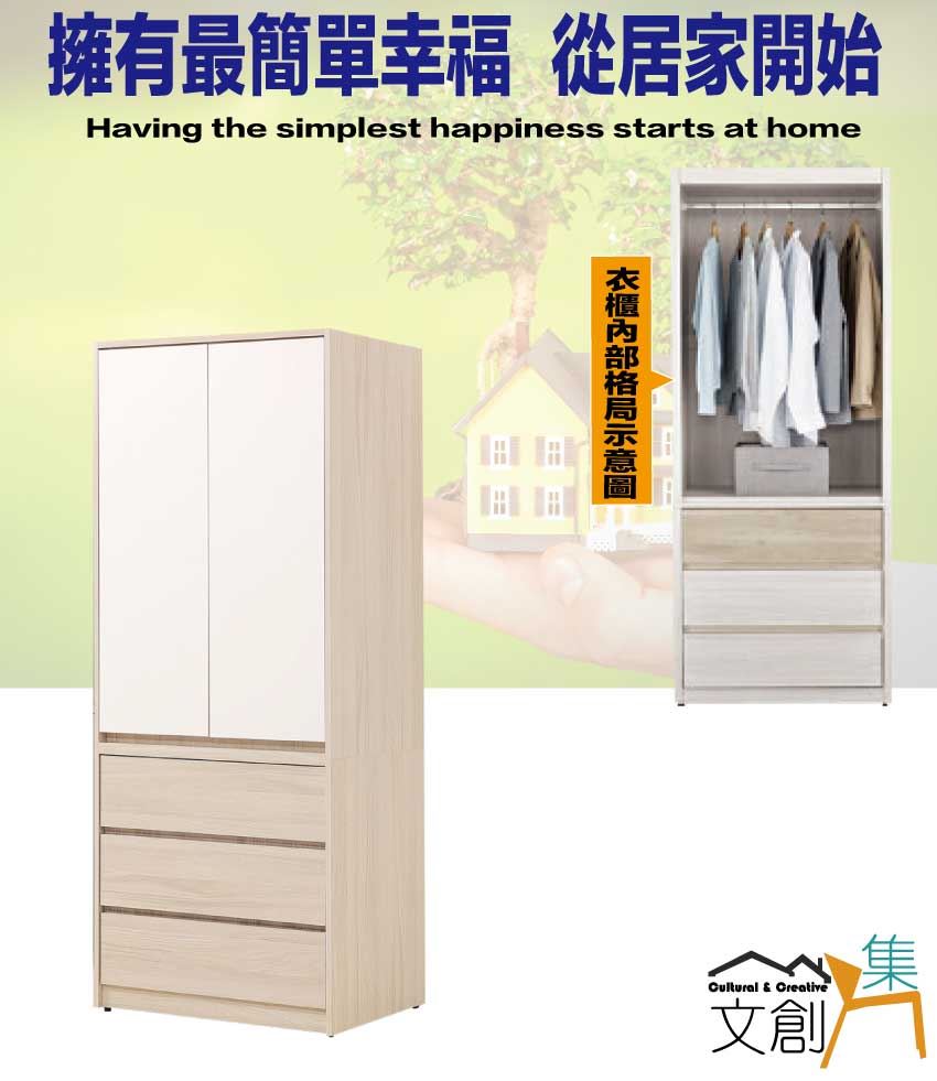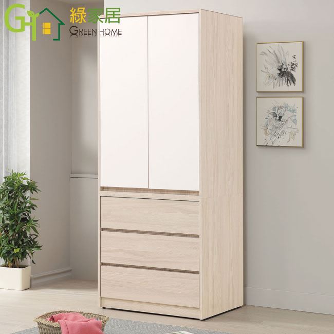【綠家居】山多利雙色2.7尺二門三抽衣櫃
