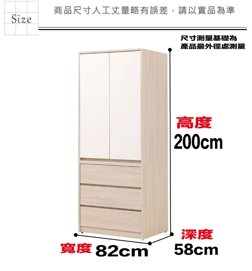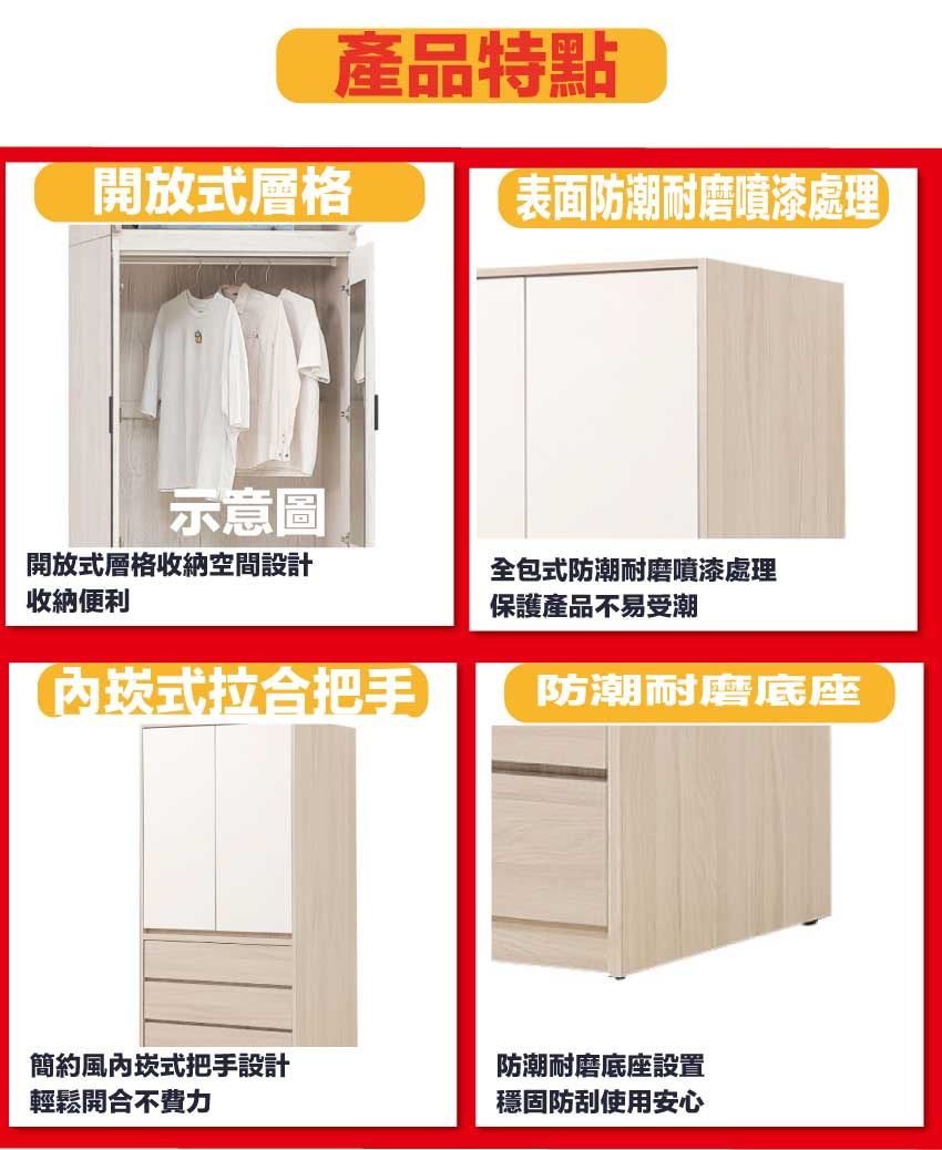 - ◆產品名稱:【綠家居】山多利雙色2.7尺二門三抽衣櫃