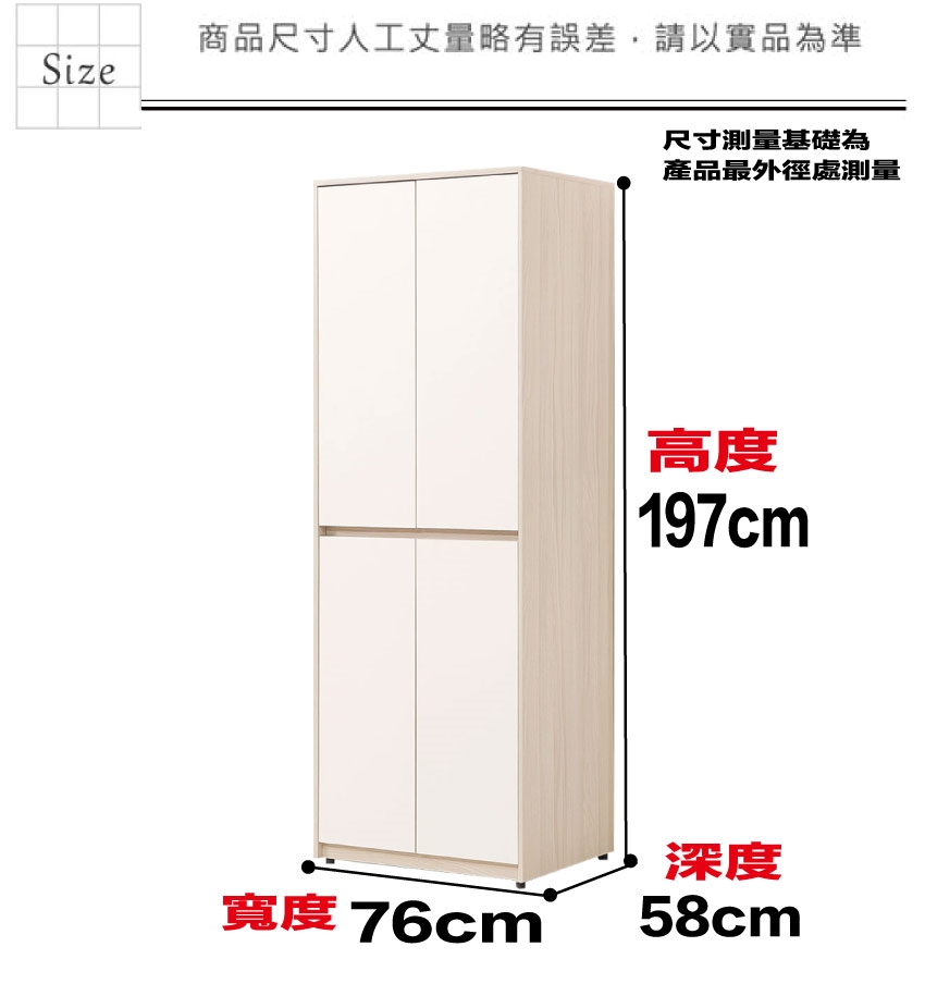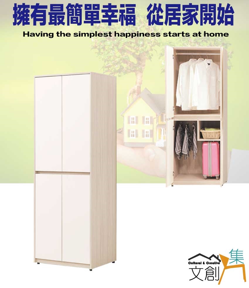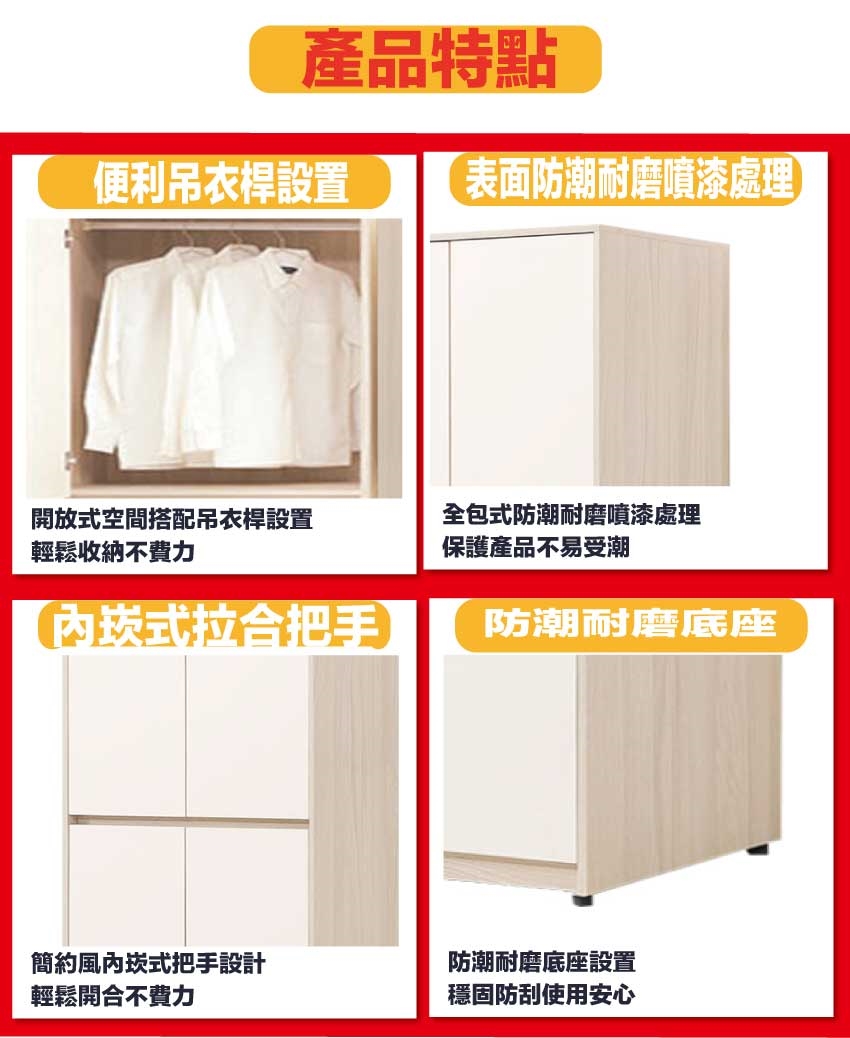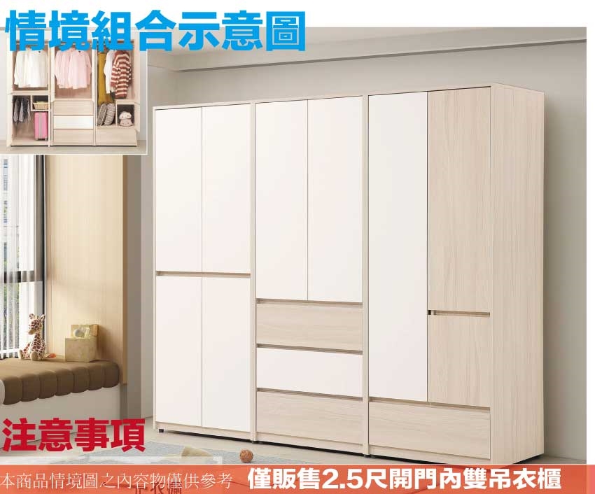 - ◆產品名稱:【綠家居】山多利雙色2.5尺四門內雙吊衣櫃