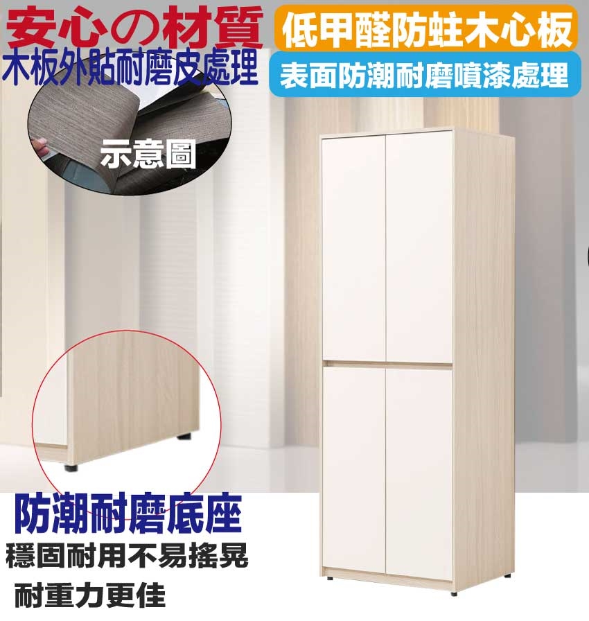 ★偏遠地區需額外加收運費,下標請先問與答詢問★ ★下訂前注意 由於商品流動較快,下訂前請先詢問是否有貨在下訂喔~★ 【綠家居】山多利雙色2.5尺四門內雙吊衣櫃 木紋雙色系+安心材質製造,使用放心+搭配居家更便利,採用防蛀木心板+防潮耐磨底座+五金滑軌結構+防夾手緩衝五金等安心材質製造 ,外層採用防潮耐磨噴漆處理搭配採用開門櫃+吊衣桿+內開放式層格等收納空間設計,全由專人配送到家,專業安心服務,替你省下更多時間!