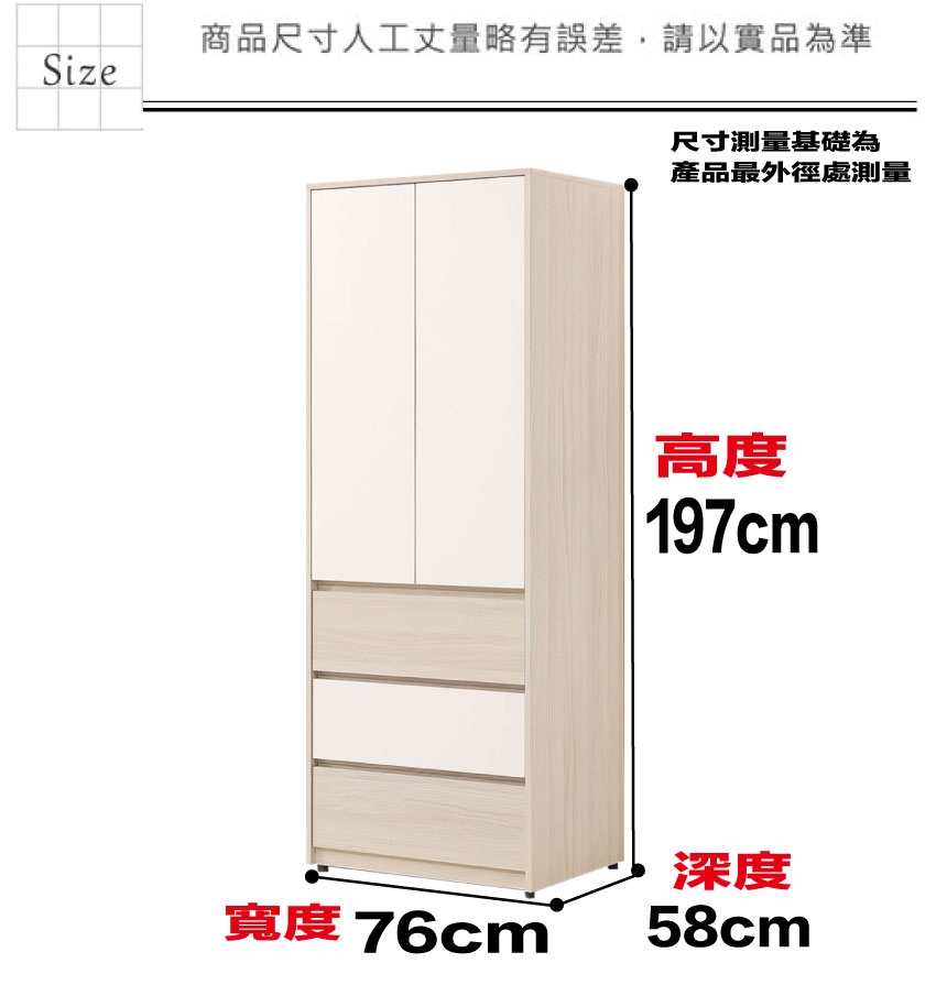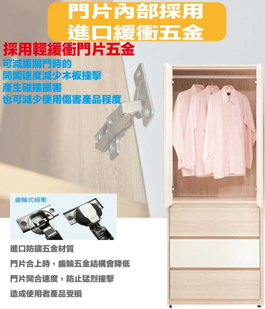 - ◆產品名稱:【綠家居】山多利2.5尺二門三抽雙色衣櫃