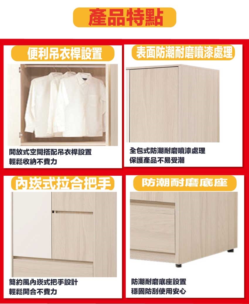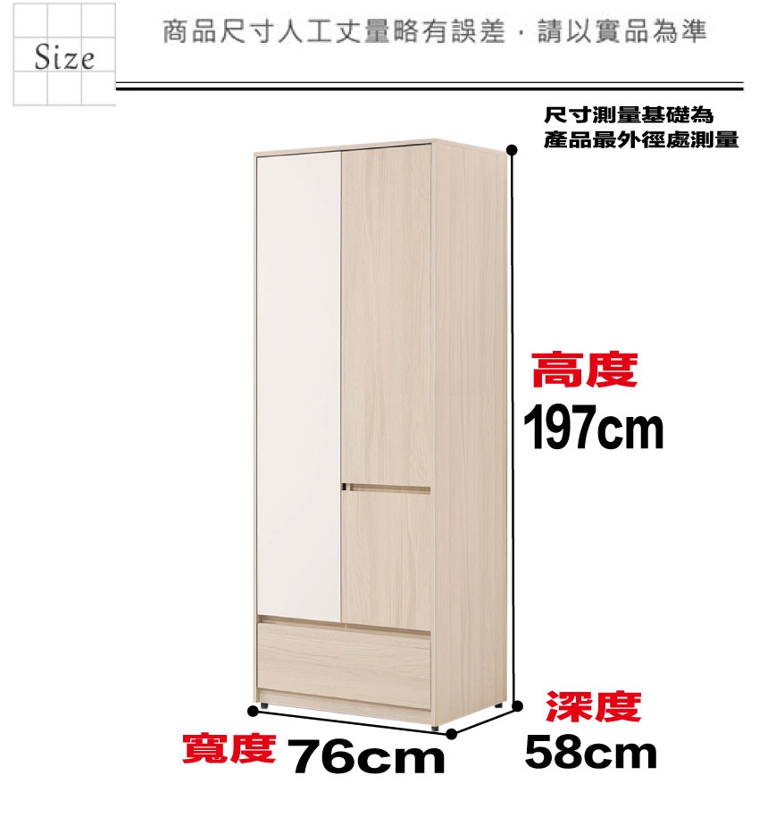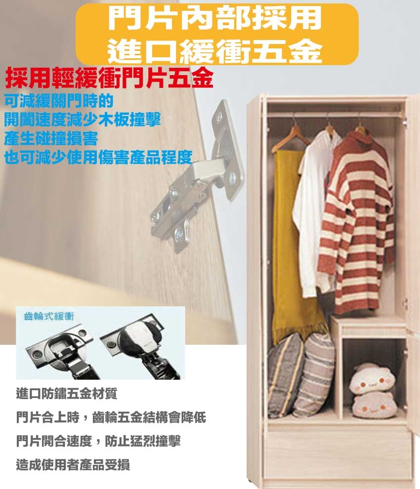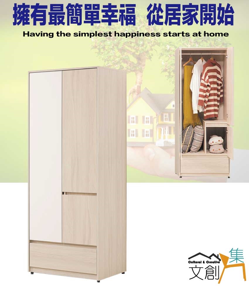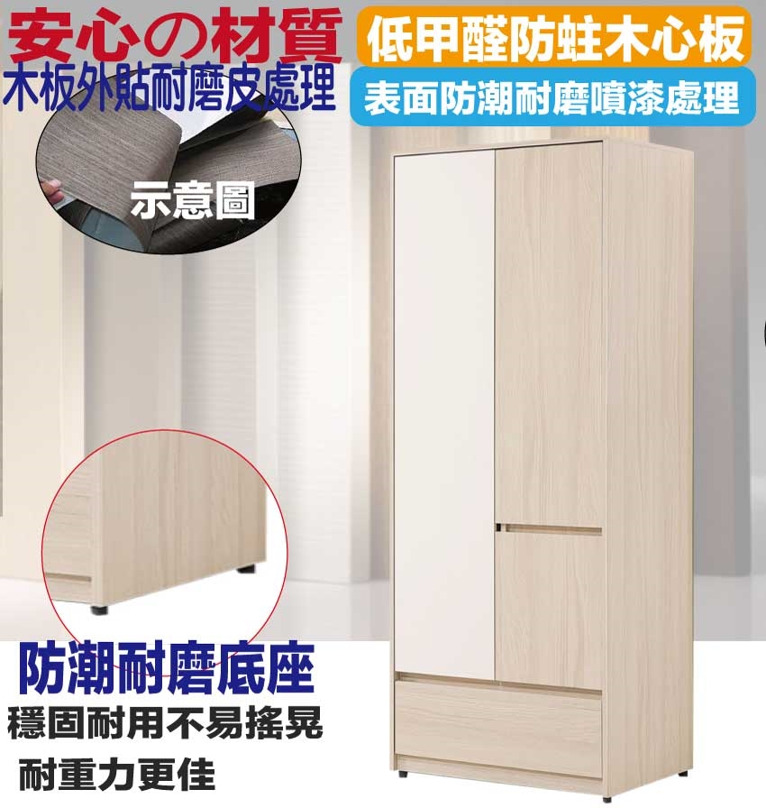 - ◆產品名稱:【綠家居】山多利2.5尺三門單抽雙色衣櫃