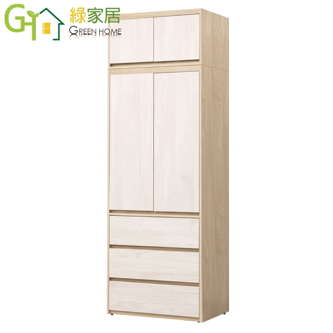 【綠家居】雷克利2.7尺四門三抽雙色加高衣櫃組合