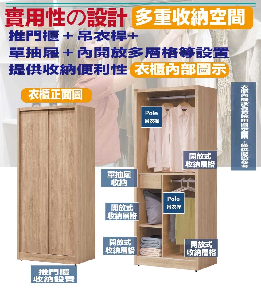 【綠家居】艾米2.7尺推門內雙吊衣櫃