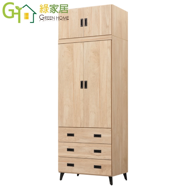 【綠家居】瑪卡利2.7尺四門三抽加高衣櫃組合