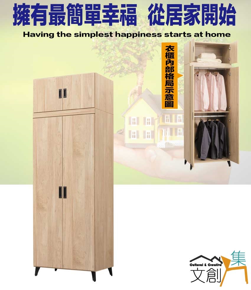 【綠家居】瑪卡利2.7尺四門內雙吊加高衣櫃組合