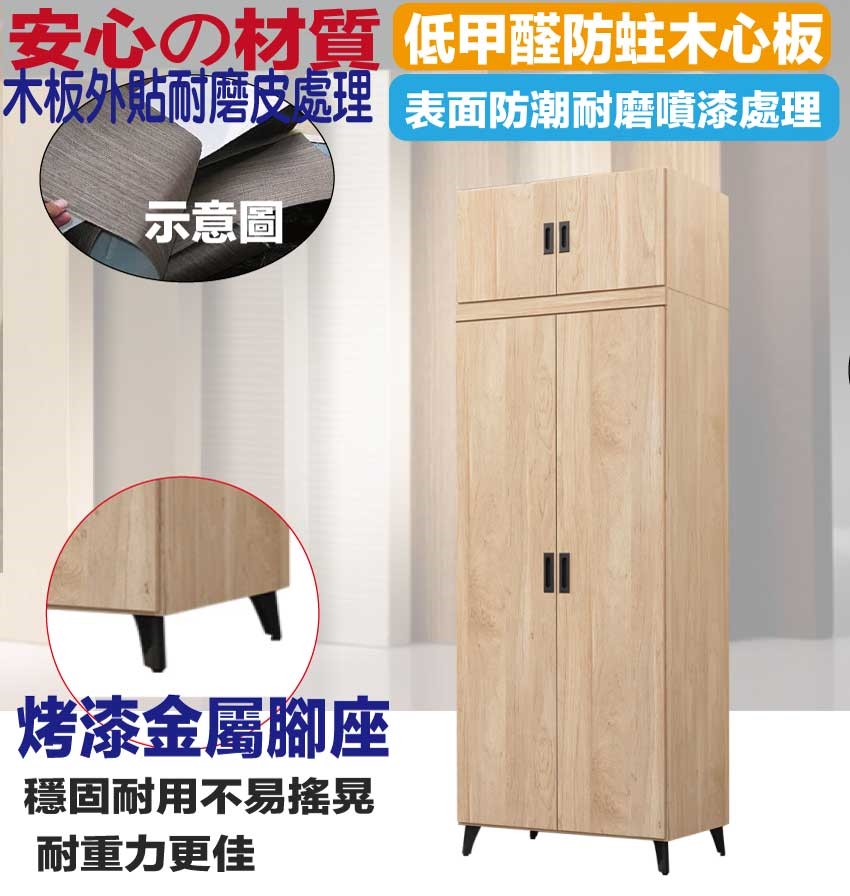 ★偏遠地區需額外加收運費,下標請先問與答詢問★ ★下訂前注意 由於商品流動較快,下訂前請先詢問是否有貨在下訂喔~★ 【綠家居】瑪卡利2.7尺四門內雙吊加高衣櫃組合 橡木紋色系+安心材質製造,使用放心+搭配居家更便利,採用防蛀木心板+防夾手緩衝門片五金+烤漆五金腳座等安心材質製造 ,外層採用防潮耐磨噴漆處理搭配採用開門櫃+吊衣桿+內開放層格等收納空間設計,全由專人配送到家,專業安心服務,替你省下更多時間!