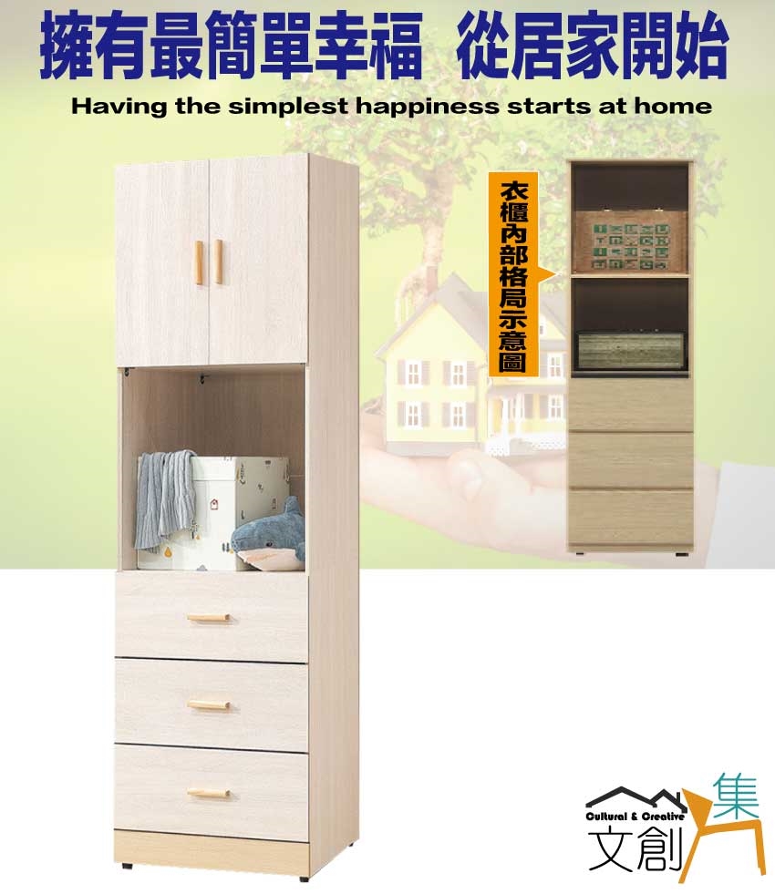 - ◆產品名稱:【綠家居】莎利雙色2尺二門三抽衣櫃