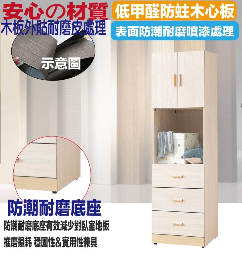 採用防蛀木心板+防夾手緩衝門片五金+防潮耐磨底座等安心材質製造