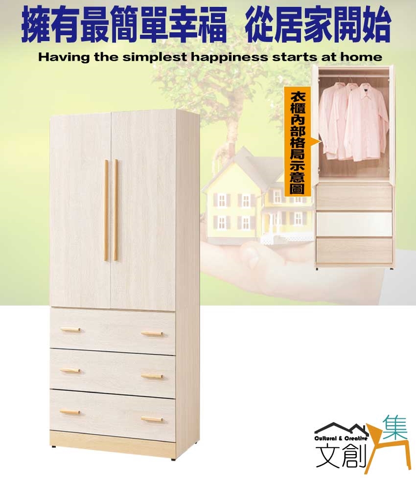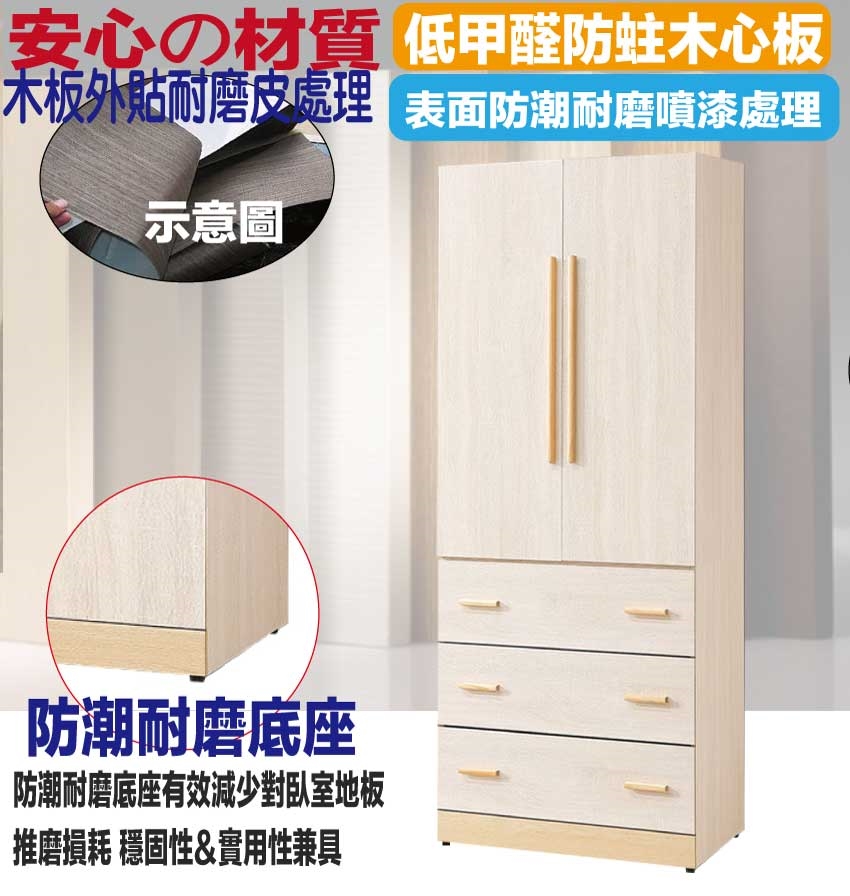 - ◆產品名稱:【綠家居】莎利雙色2.7尺二門三抽衣櫃