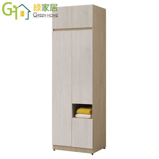 ★偏遠地區需額外加收運費,下標請先問與答詢問★ ★下訂前注意 由於商品流動較快,下訂前請先詢問是否有貨在下訂喔~★ 【綠家居】約奇2.5尺五門內單吊加高衣櫃組合(左&右二向開門方向可選) 木紋雙色系+安心材質製造,使用放心+搭配居家更便利,採用防蛀木心板+防潮耐磨底座+防夾手緩衝門片五金等安心材質製造 ,外層採用防潮耐磨噴漆處理搭配採用開門櫃+吊衣桿+內開放多層格等收納空間設計,全由專人配送到家,專業安心服務,替你省下更多時間!