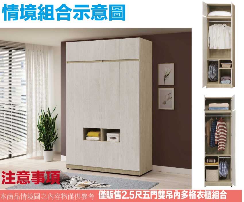 【綠家居】約奇2.5尺五門內單吊加高衣櫃組合(左&右二向開門方向可選)