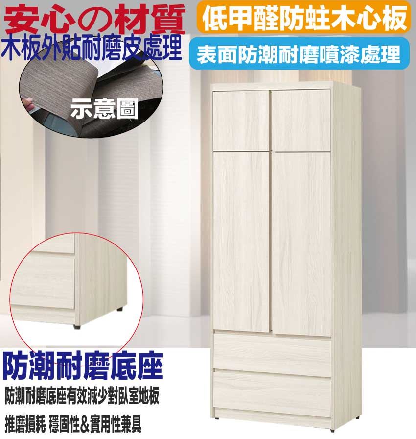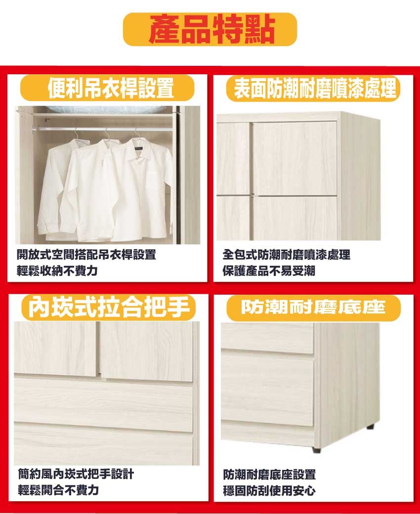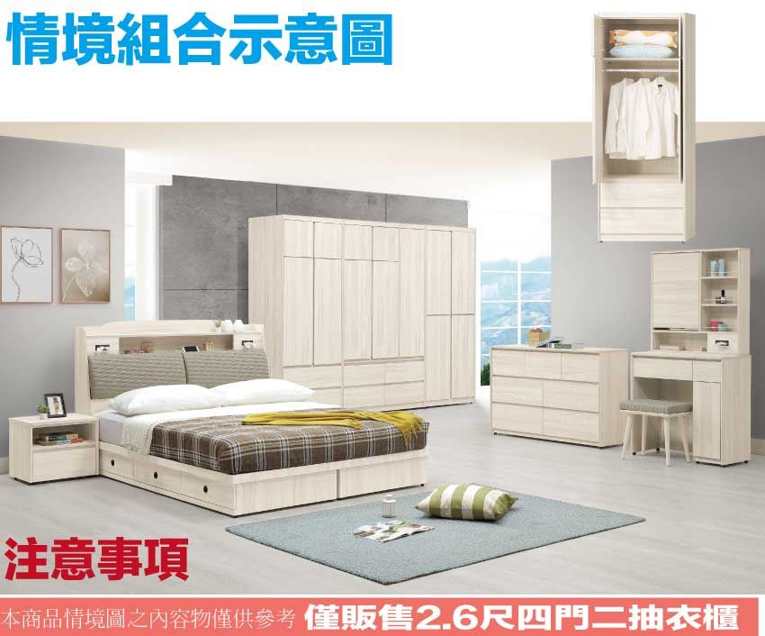 - ◆產品名稱:【綠家居】 奧斯巴2.6尺四門二抽高衣櫃