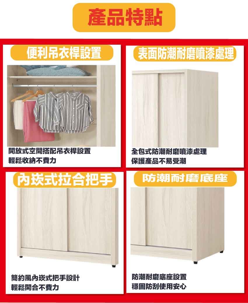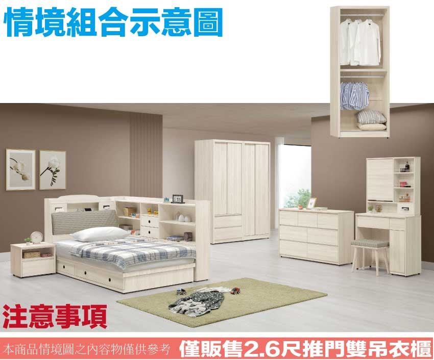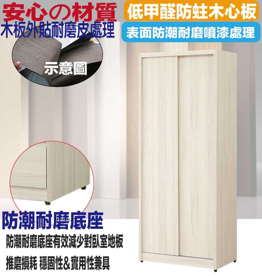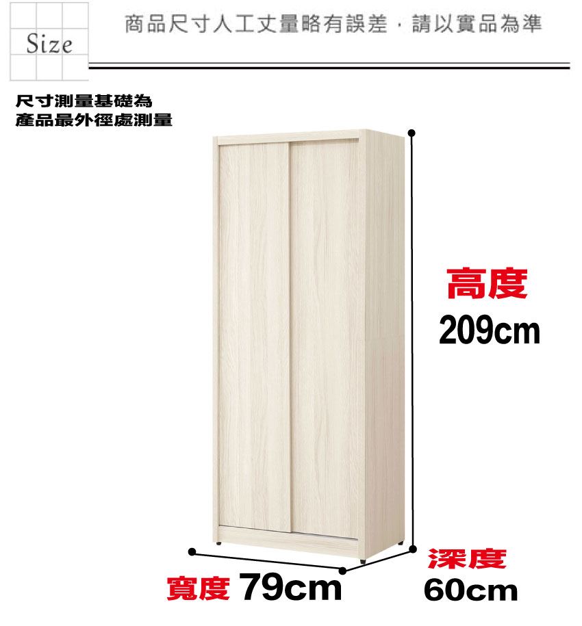 - ◆產品名稱:【綠家居】奧斯巴2.6尺推門雙吊高衣櫃