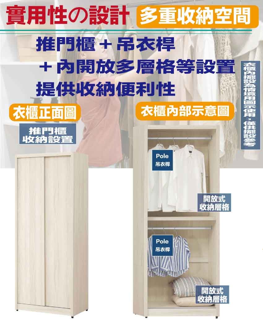 【綠家居】奧斯巴2.6尺推門雙吊高衣櫃