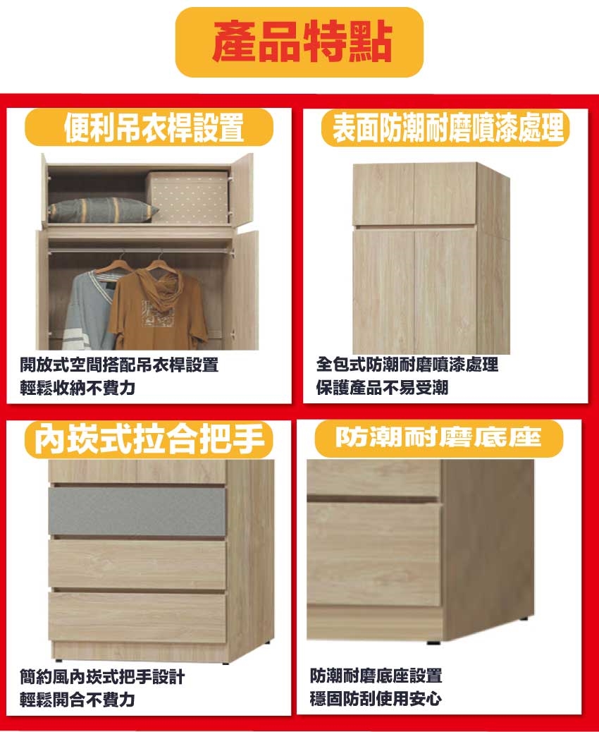 採用防蛀木心板+防潮耐磨底座+五金滑軌結構+防夾手緩衝五金等安心材質製造