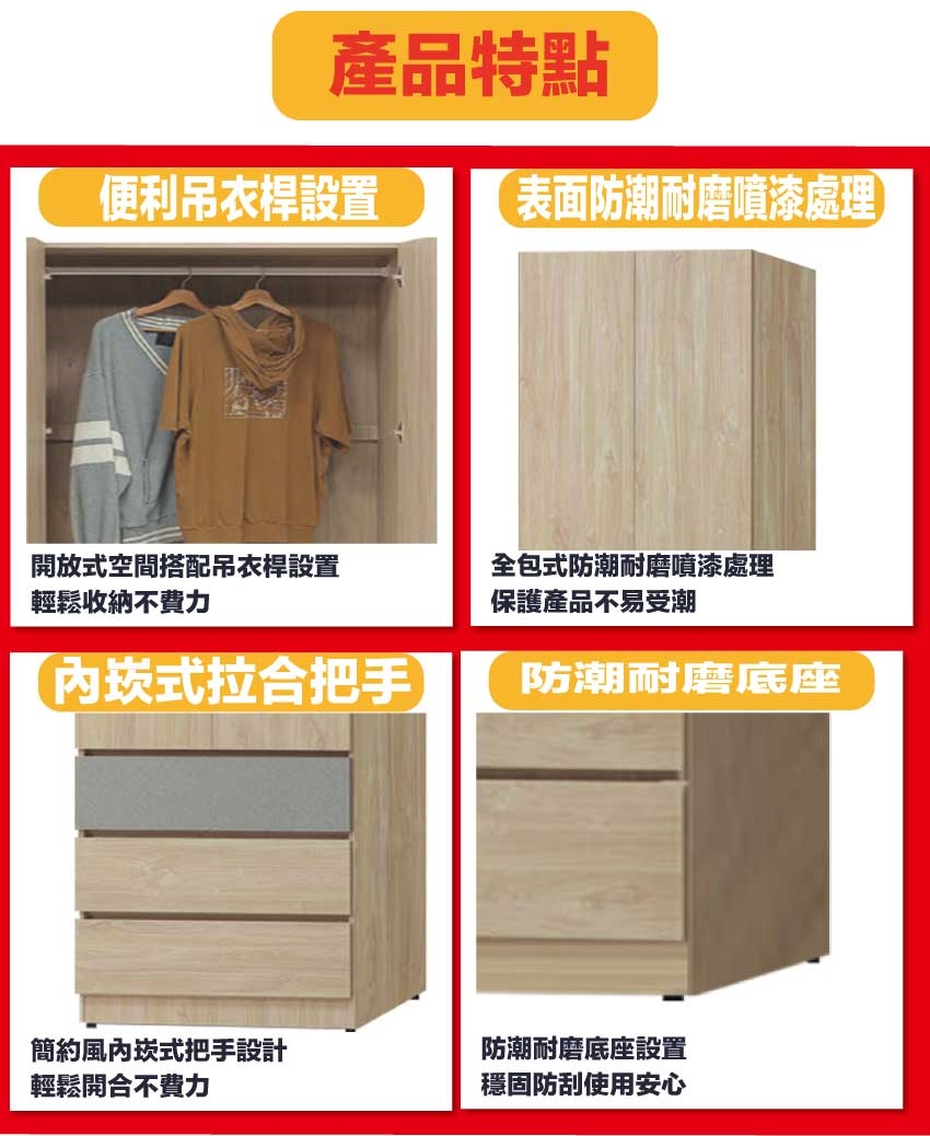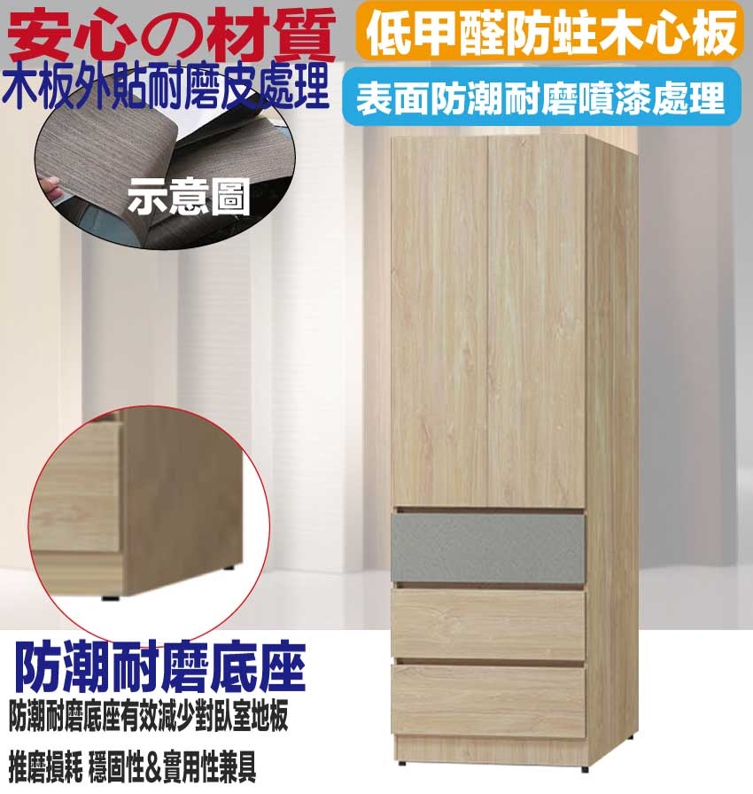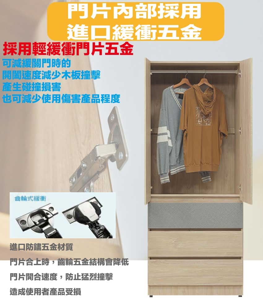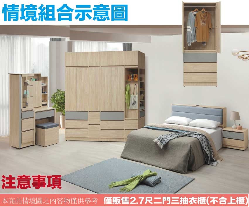 - ◆產品名稱:【綠家居】唐斯2.7尺二門三抽衣櫃