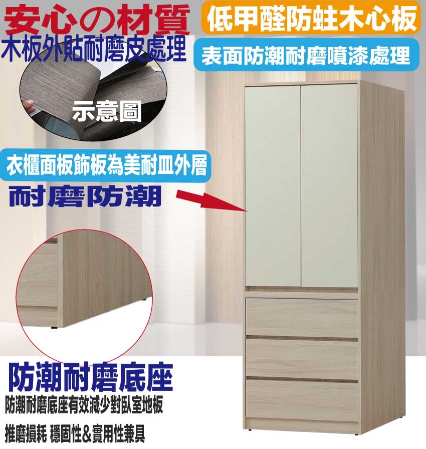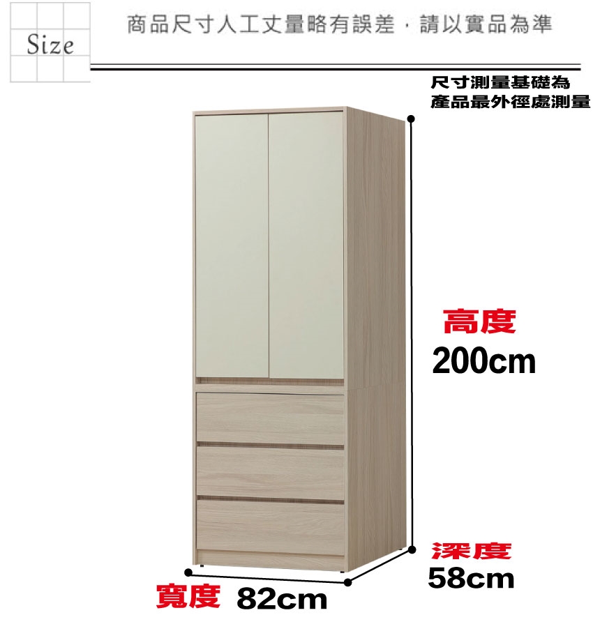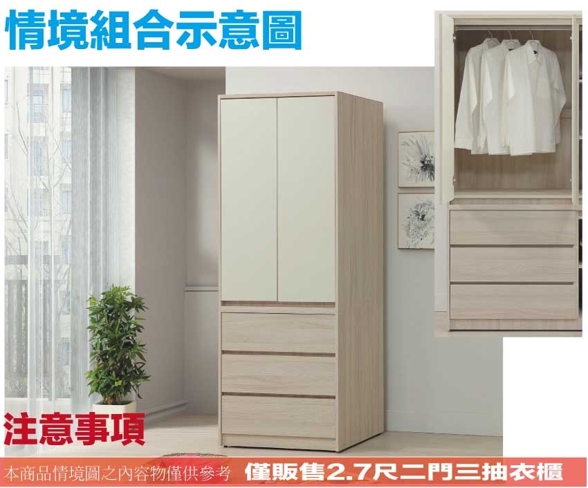 - ◆產品名稱:【綠家居】美斯2.7尺二門三抽衣櫃