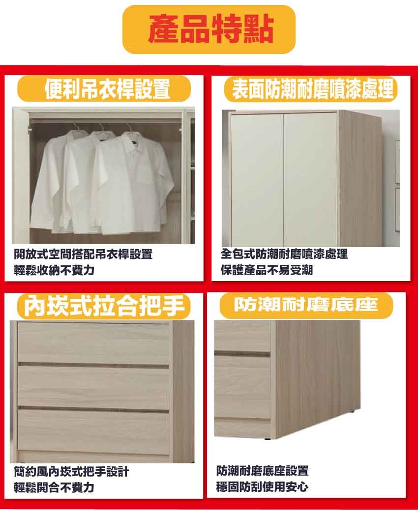 材質:防蛀木心板+防潮耐磨底座+五金滑軌結構+防夾手緩衝門片五金