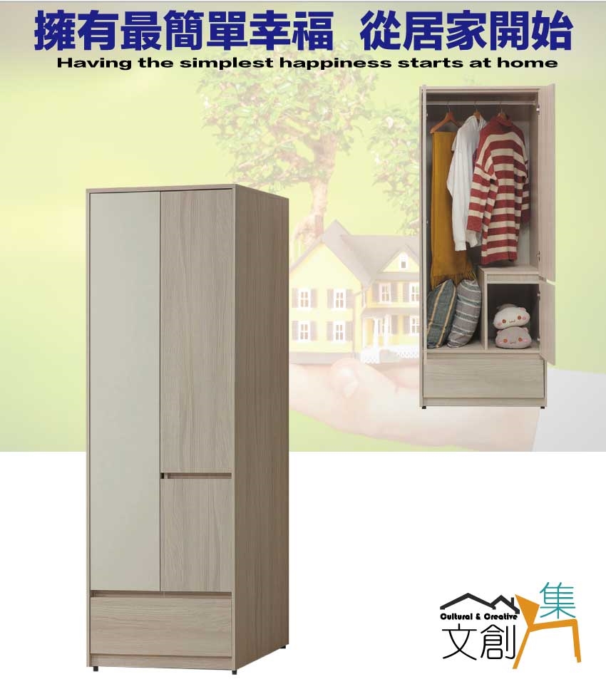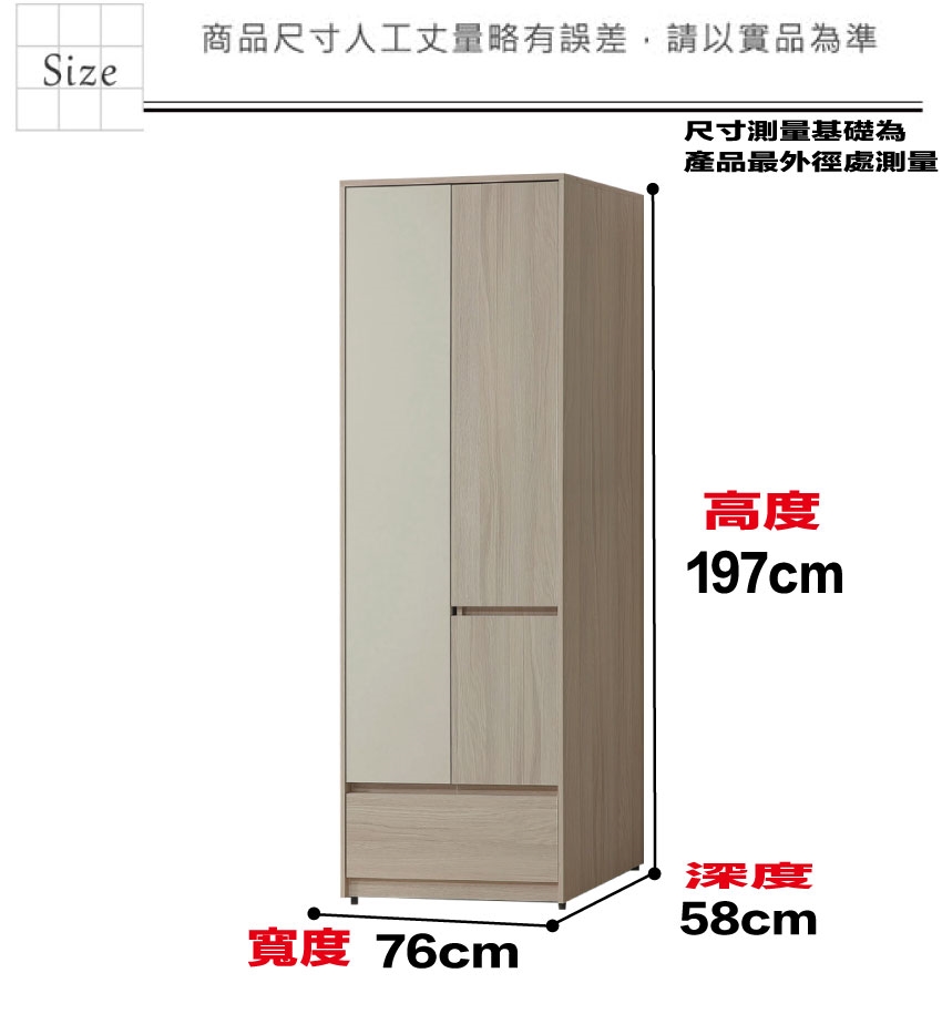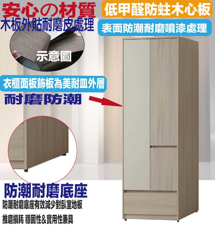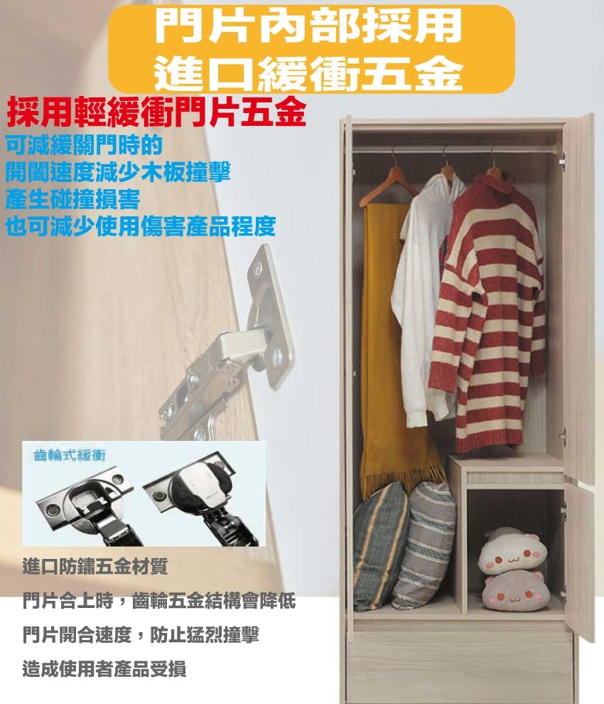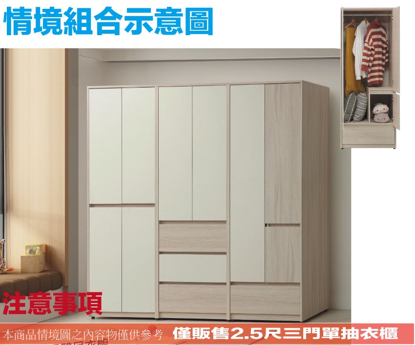 - ◆產品名稱:【綠家居】美斯2.5尺三門單抽衣櫃