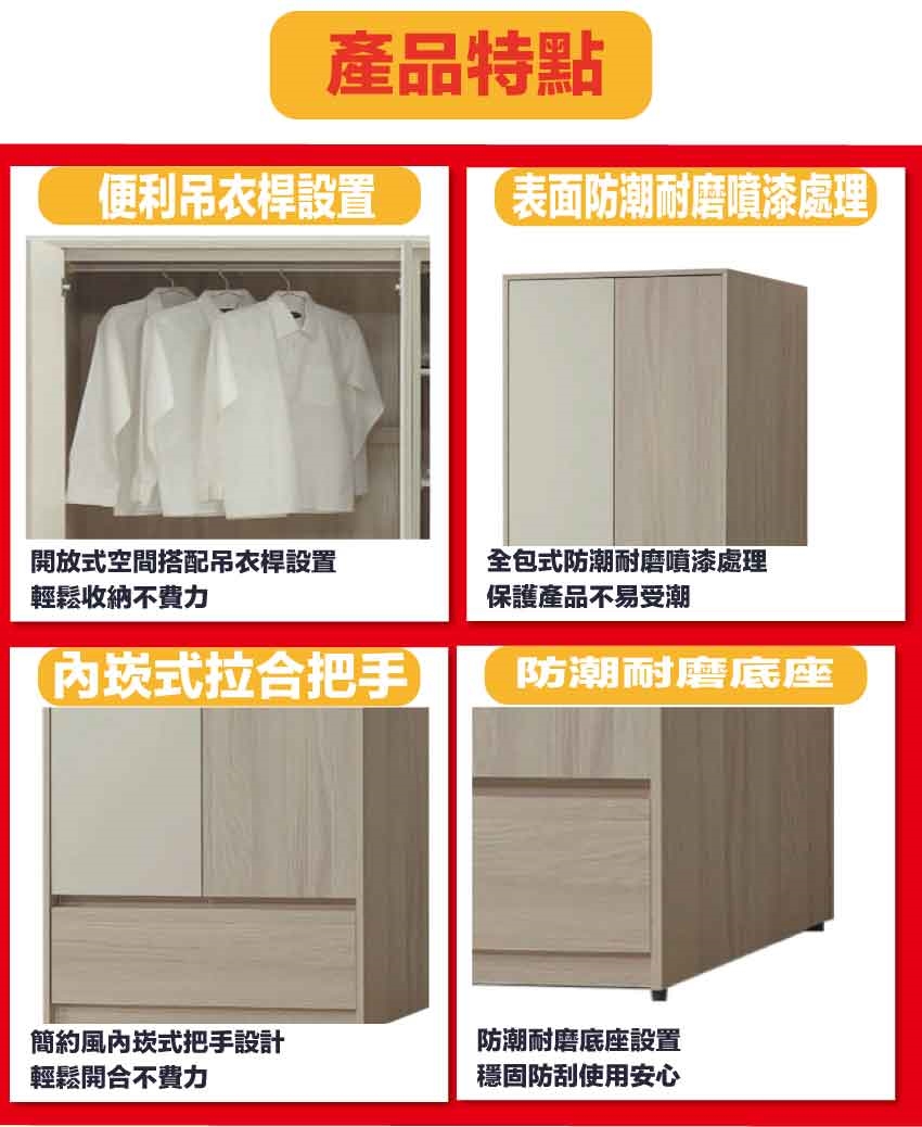 材質:防蛀木心板+防潮耐磨底座+五金滑軌結構+防夾手緩衝門片五金