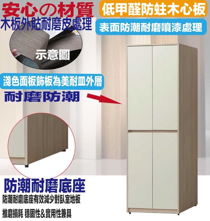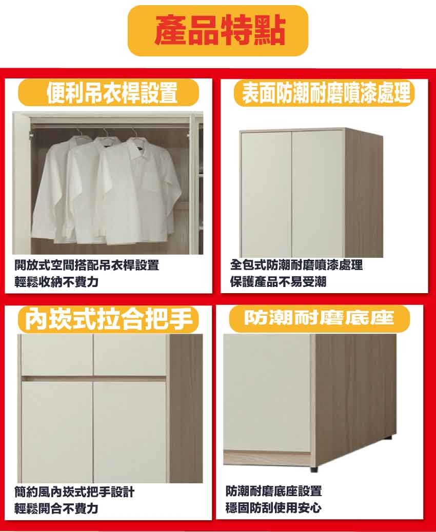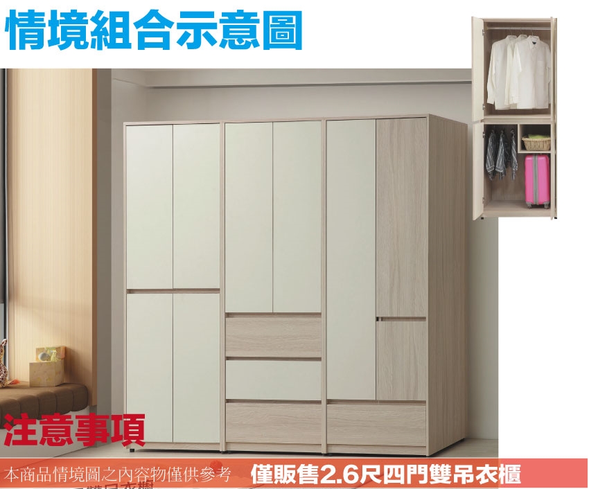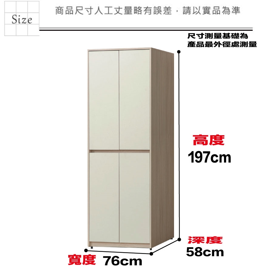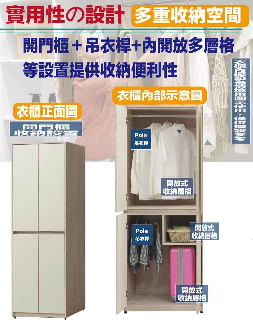- ◆產品名稱:【綠家居】美斯2.5尺四門雙吊衣櫃