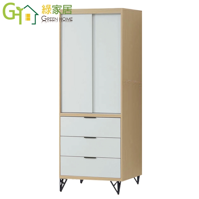 【綠家居】普伊斯2.7尺推門三抽鐵腳衣櫃(二色可選)