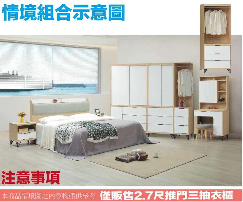 - 25GY43-46323原雙色&白榆2.7推門衣櫃