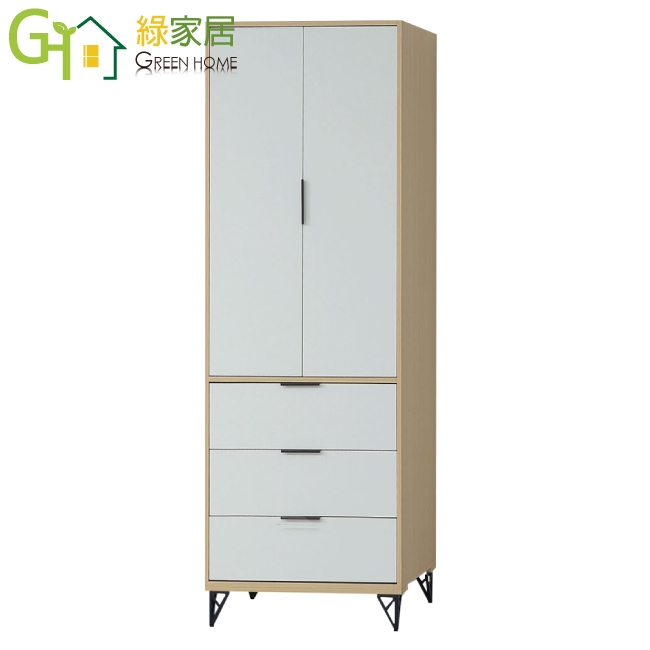 【綠家居】普伊斯2.5尺二門三抽鐵腳衣櫃(二色可選)