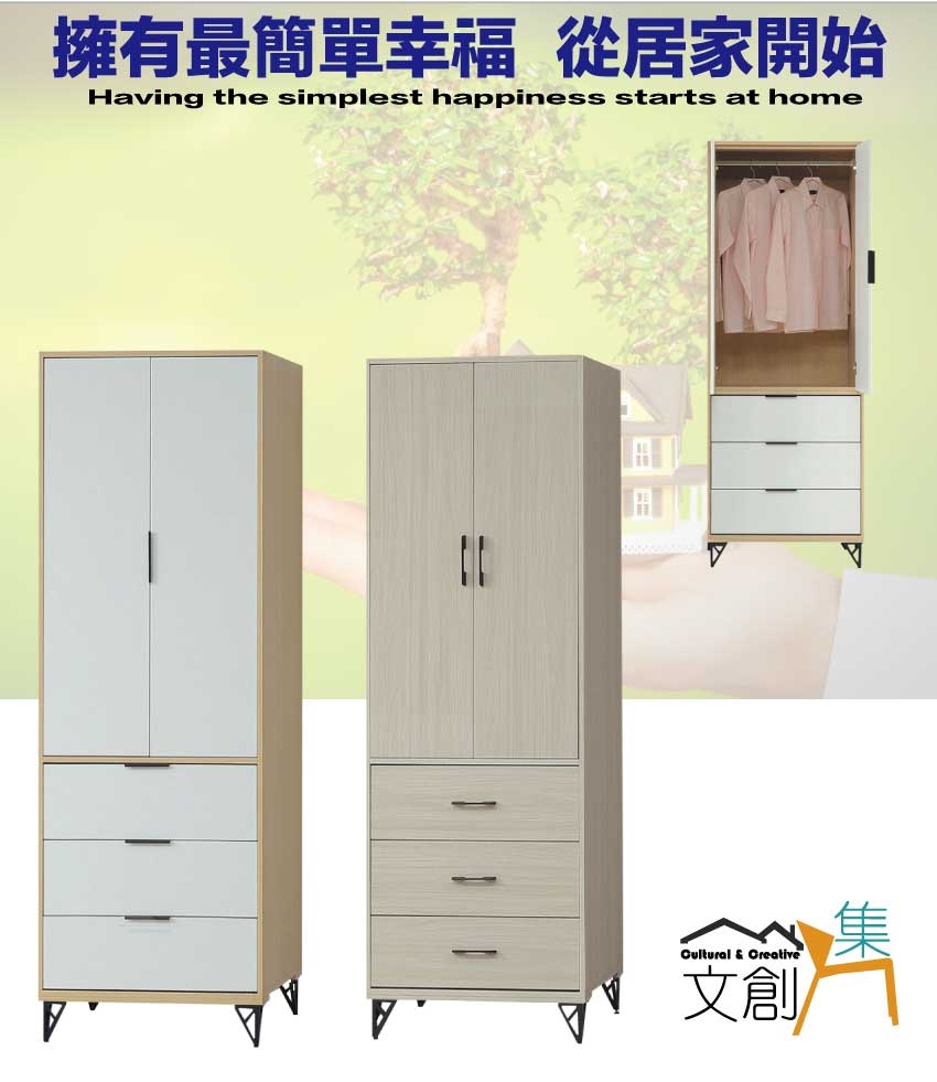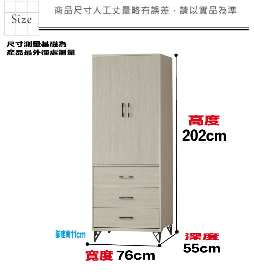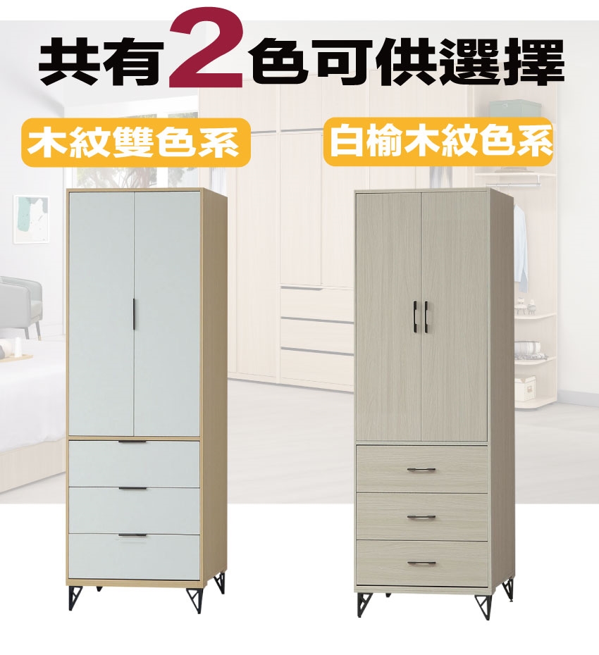 - ◆產品名稱:【綠家居】普伊斯2.5尺二門三抽鐵腳衣櫃(二色可選)