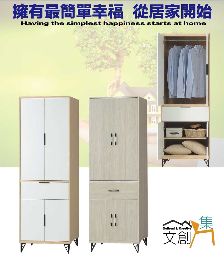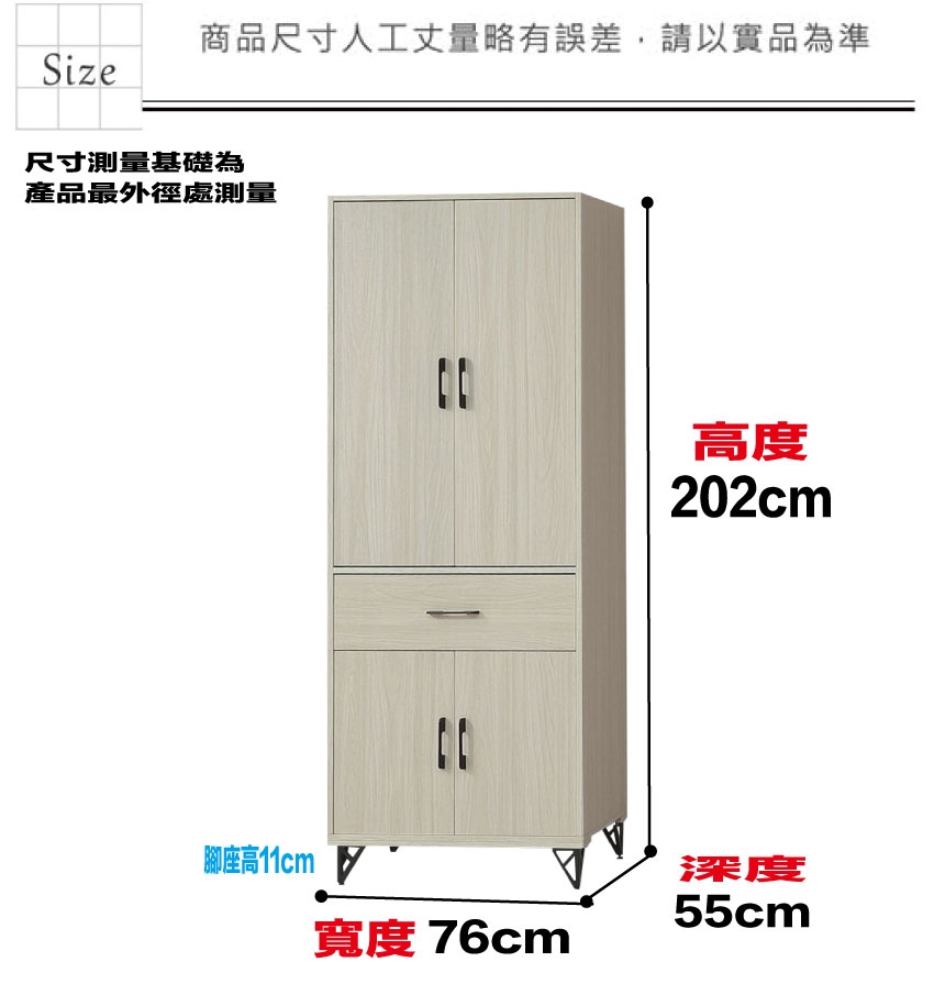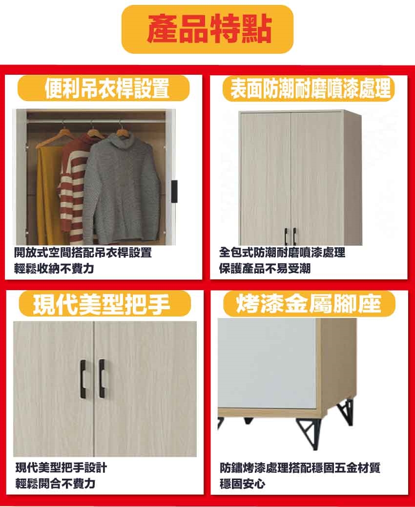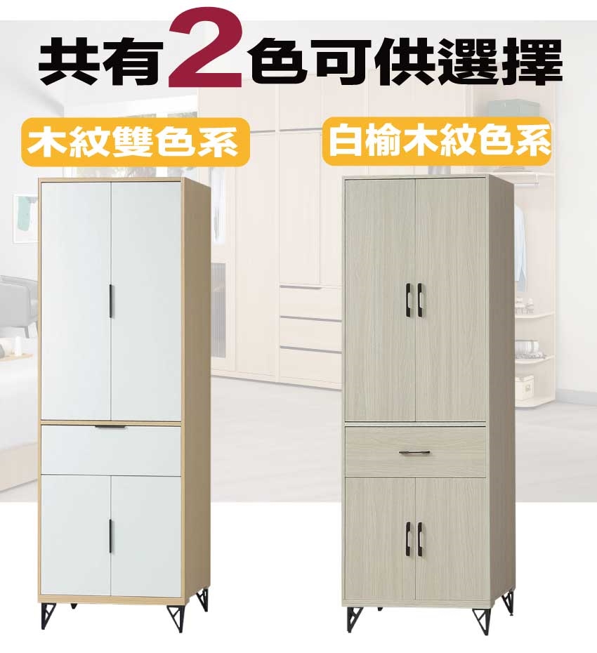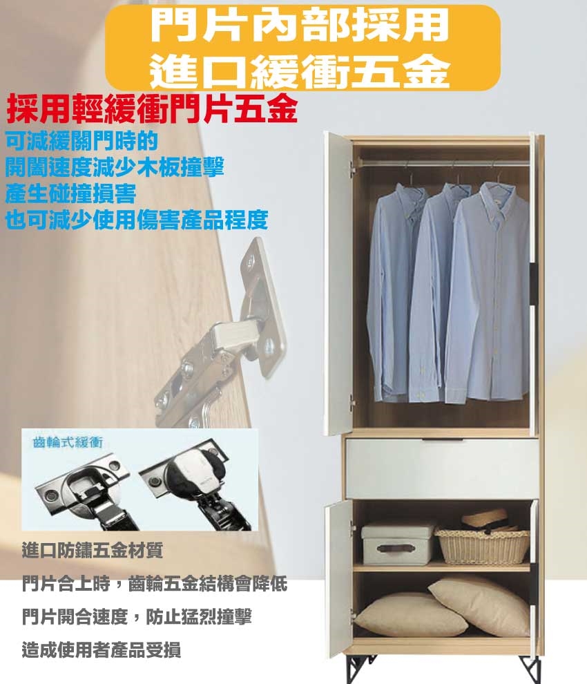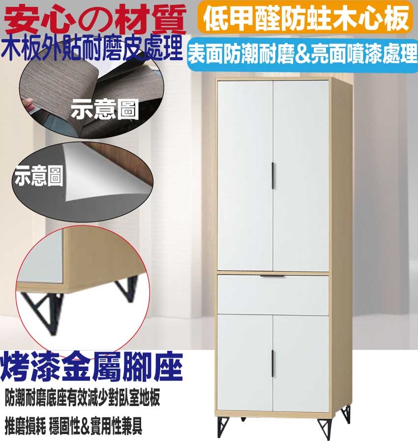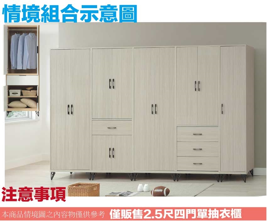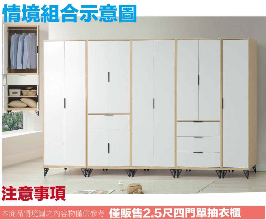 - ◆產品名稱:【綠家居】普伊斯2.5尺四門單抽鐵腳衣櫃(二色可選)