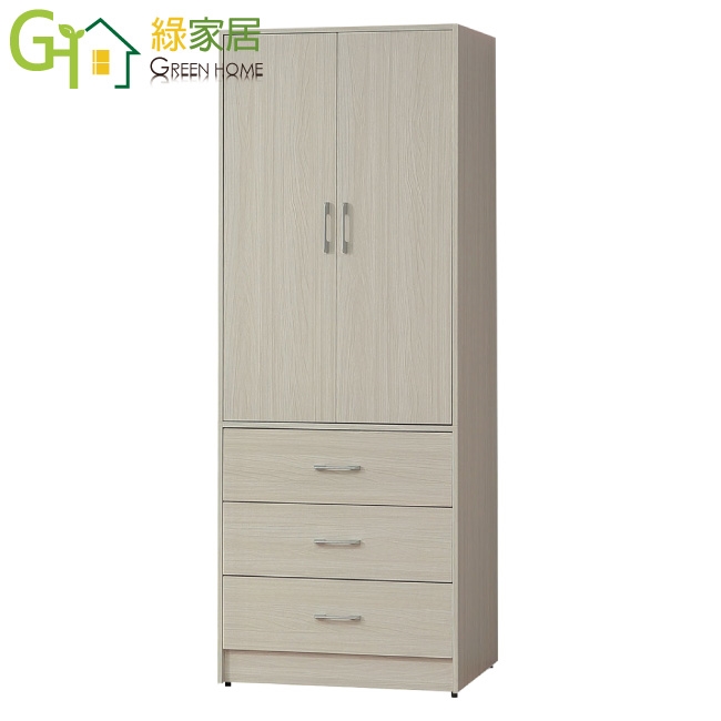 【綠家居】普伊斯2.7尺二門三抽衣櫃