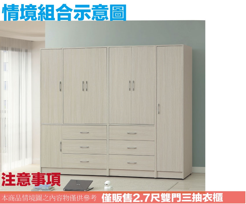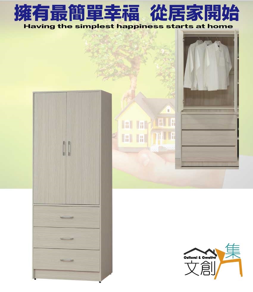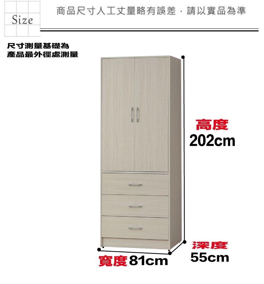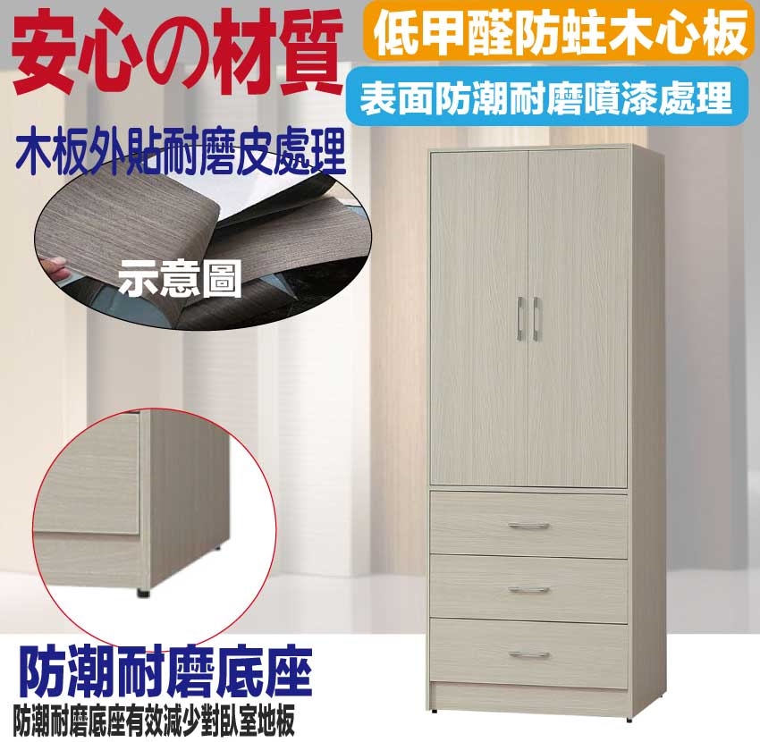 - ◆產品名稱:【綠家居】普伊斯2.7尺二門三抽衣櫃
